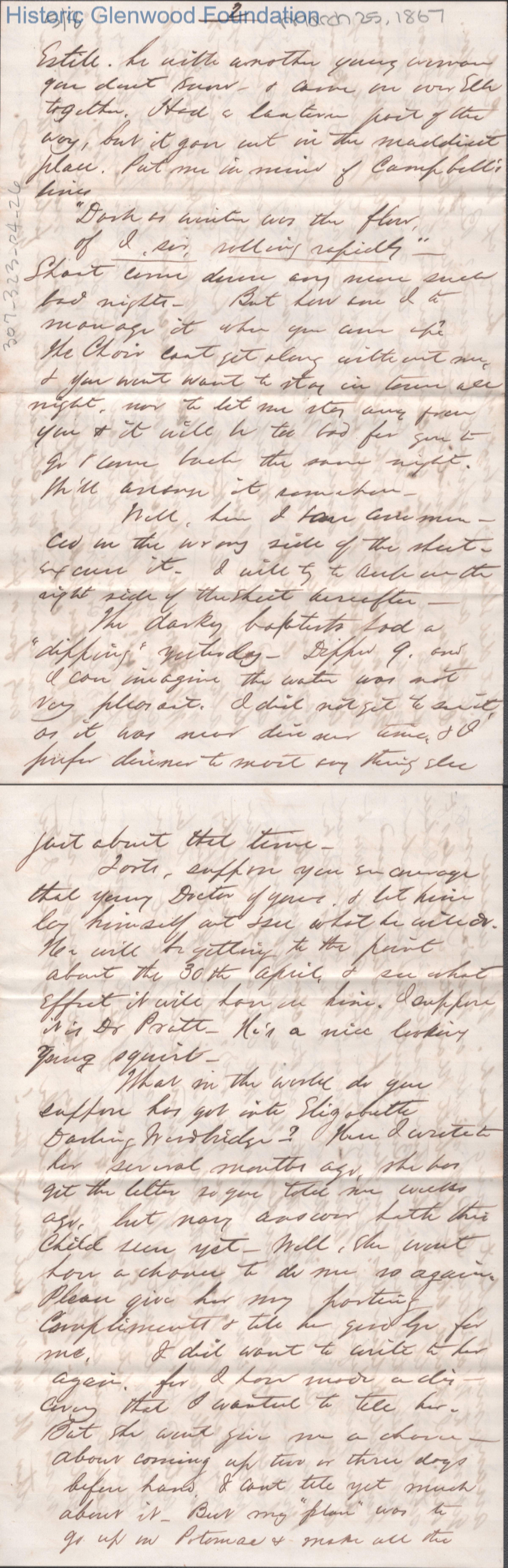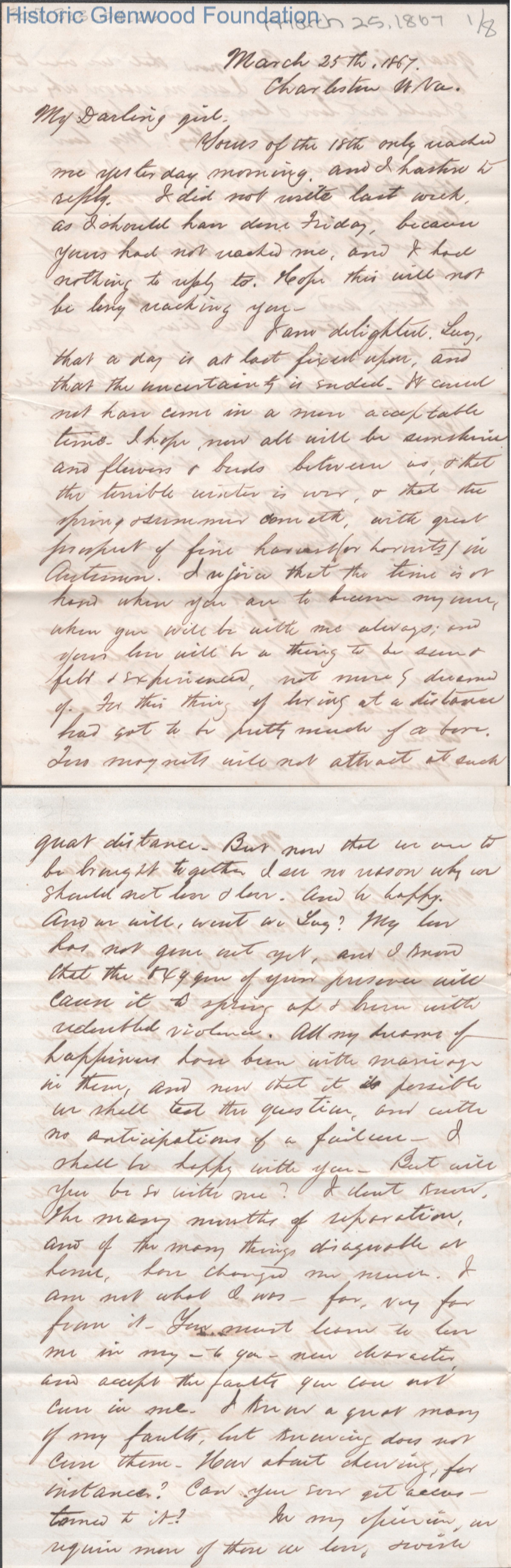 Eight-page letter to Lucy W. Summers from Lewis Summers, Mar 25, 1867.