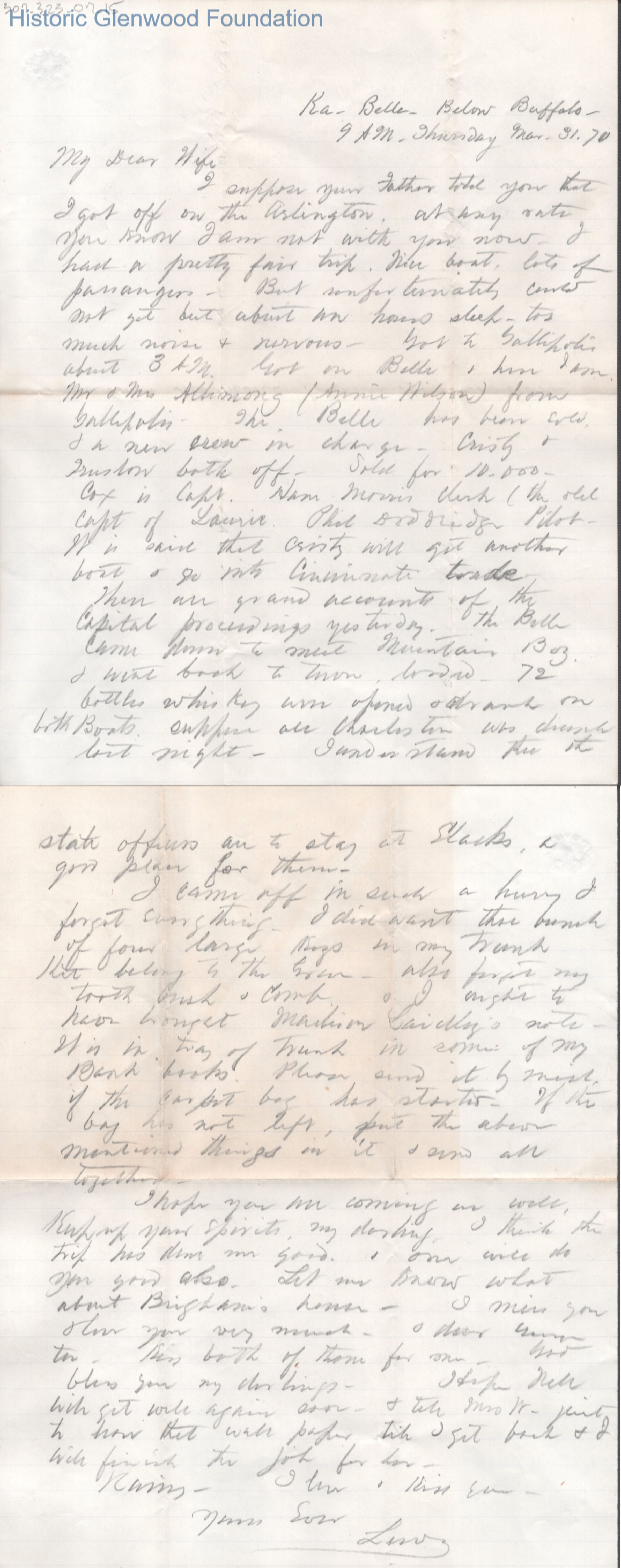 Two-page letter to Lucy W. Summers from Lewis Summers, Mar 31, 1870.