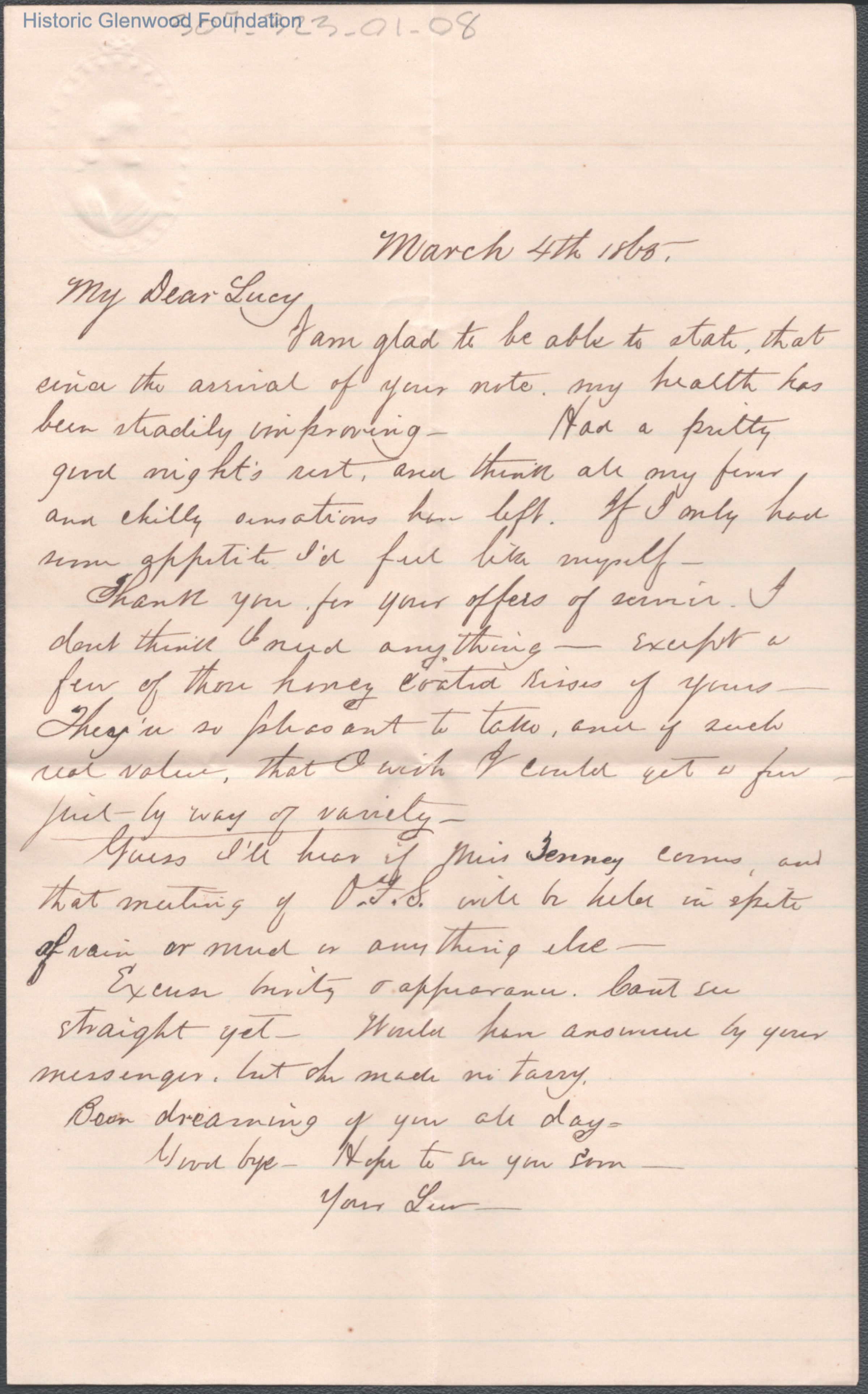 Lucy W. Summers from Lewis Summers, Mar 4, 1865