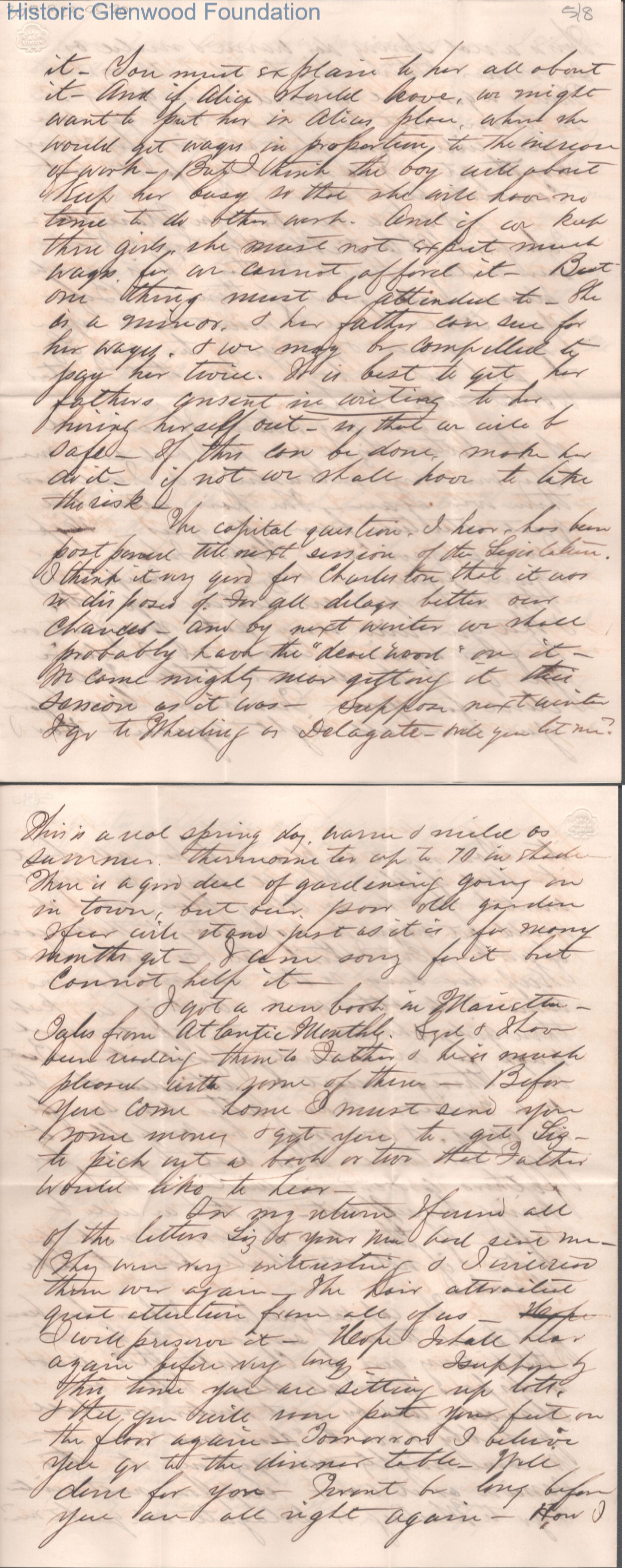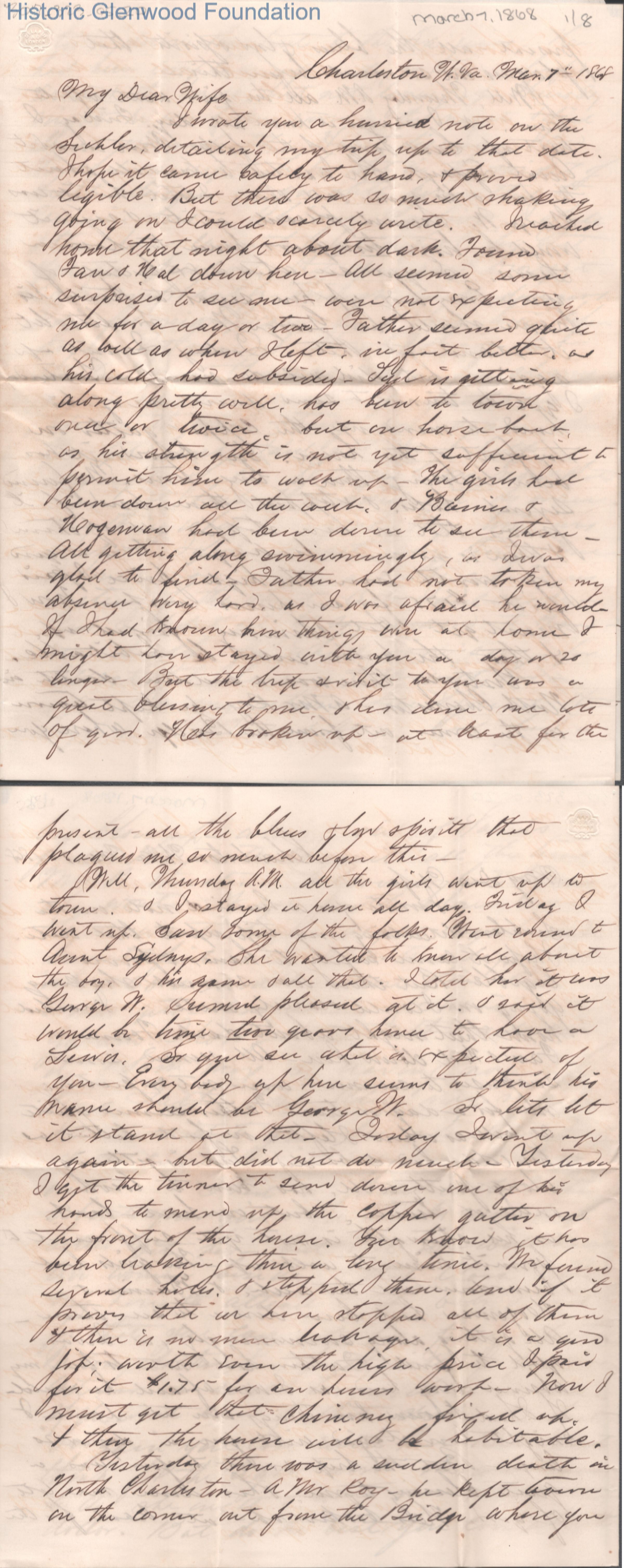 Eight-page letter to Lucy W. Summers from Lewis Summers, Mar 7, 1868.
