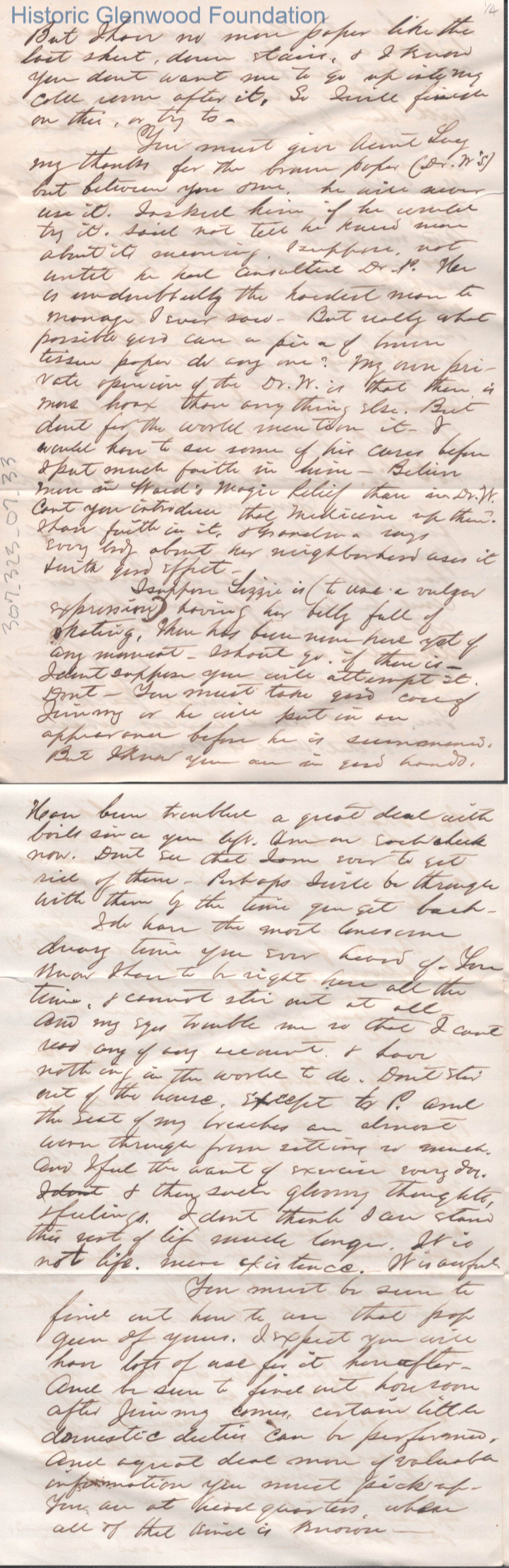 Four-page excerpt from a letter to Lucy W. Summers from Lewis Summers, no date.