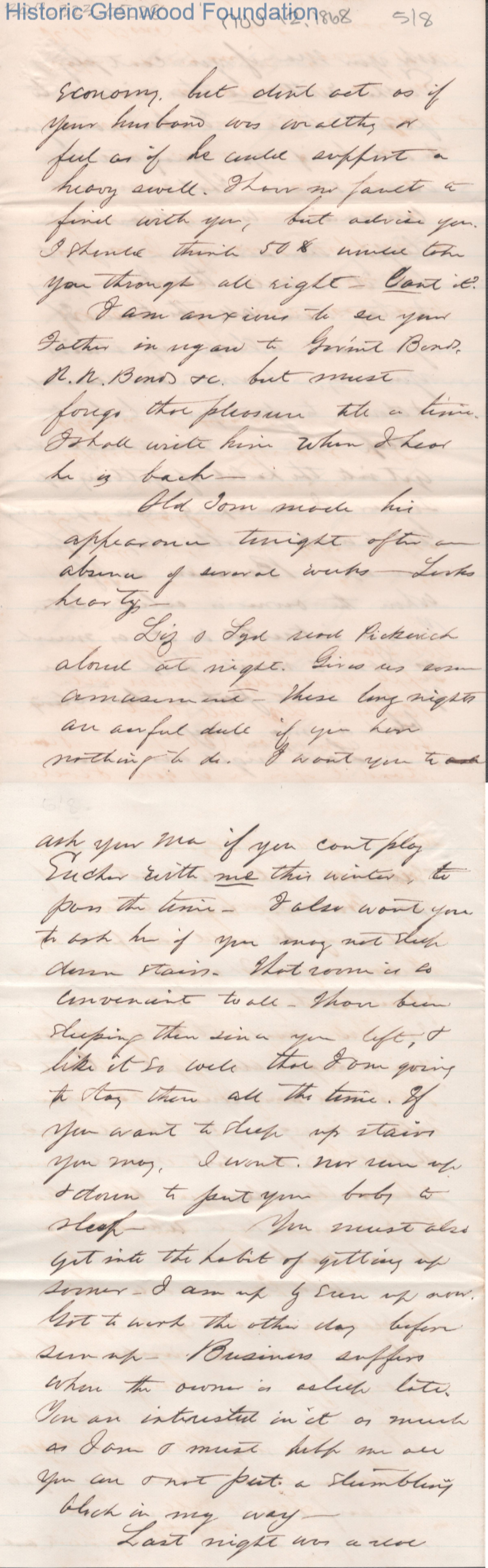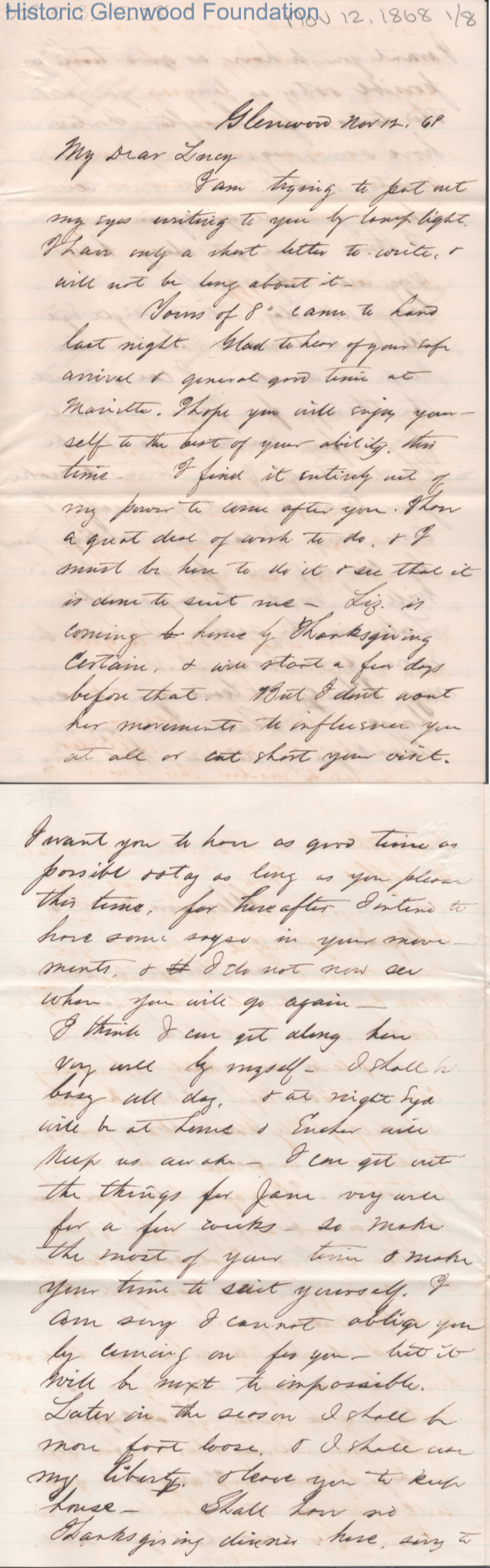 Eight-page letter to Lucy W. Summers from Lewis Summers, Nov 12, 1868.