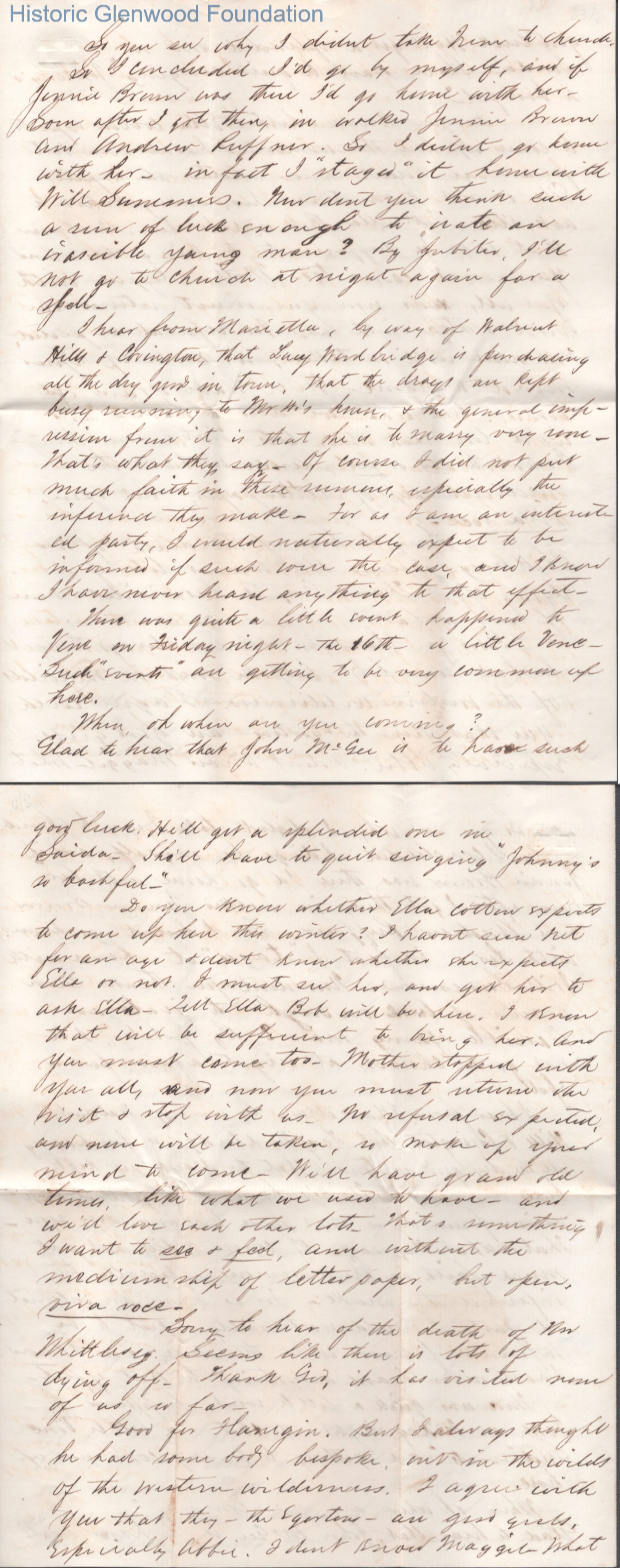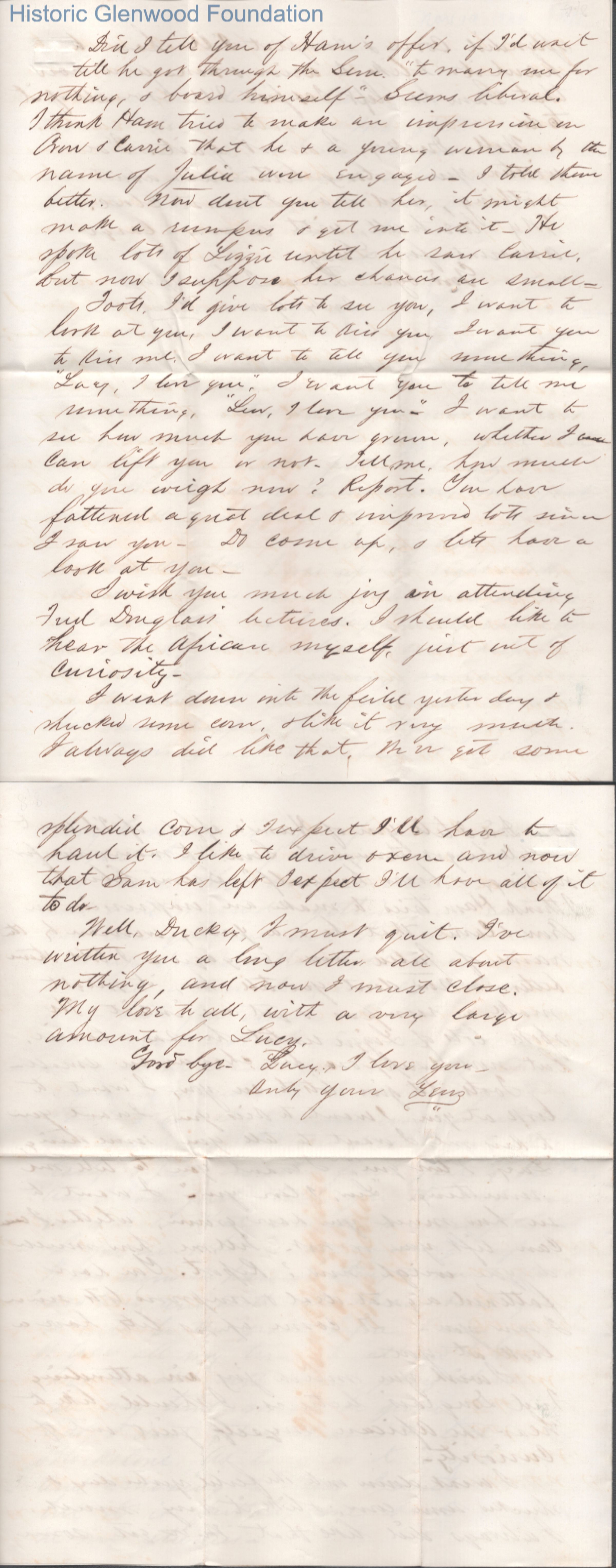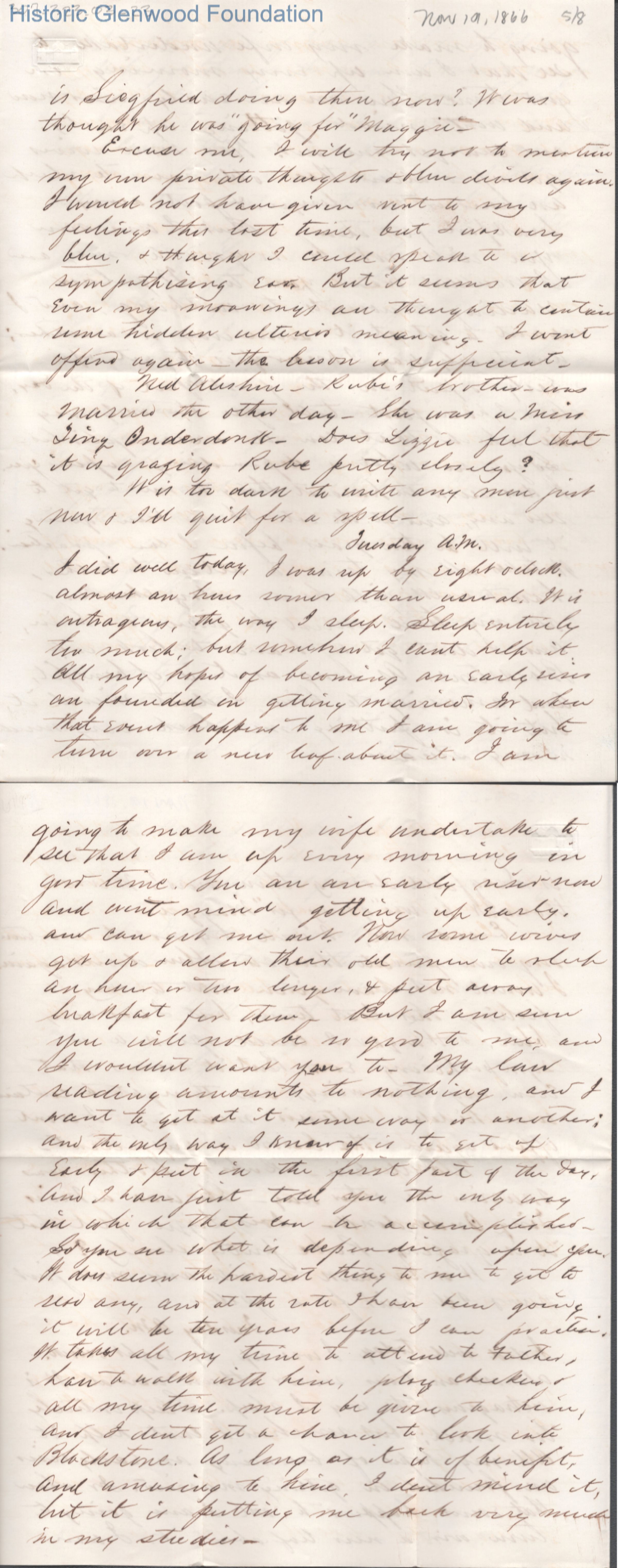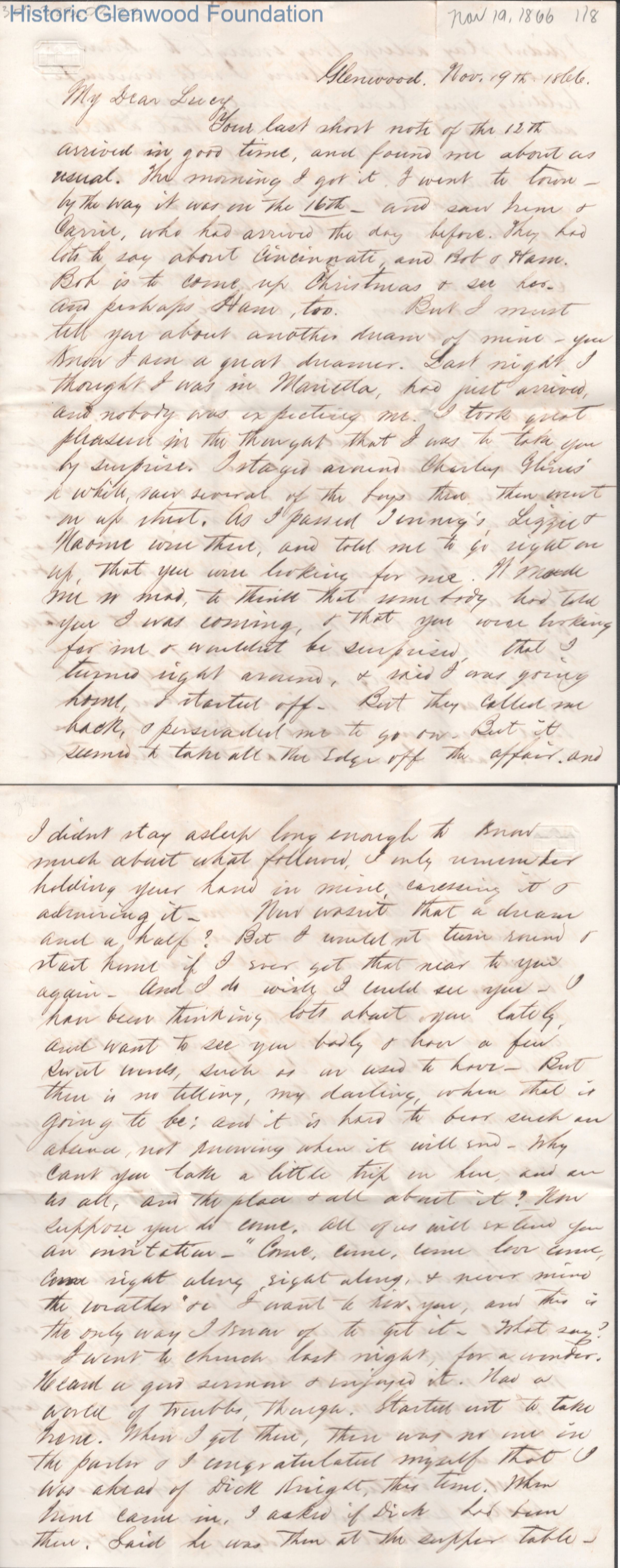 Eight-page letter to Lucy W. Summers from Lewis Summers, Nov 19, 1866.