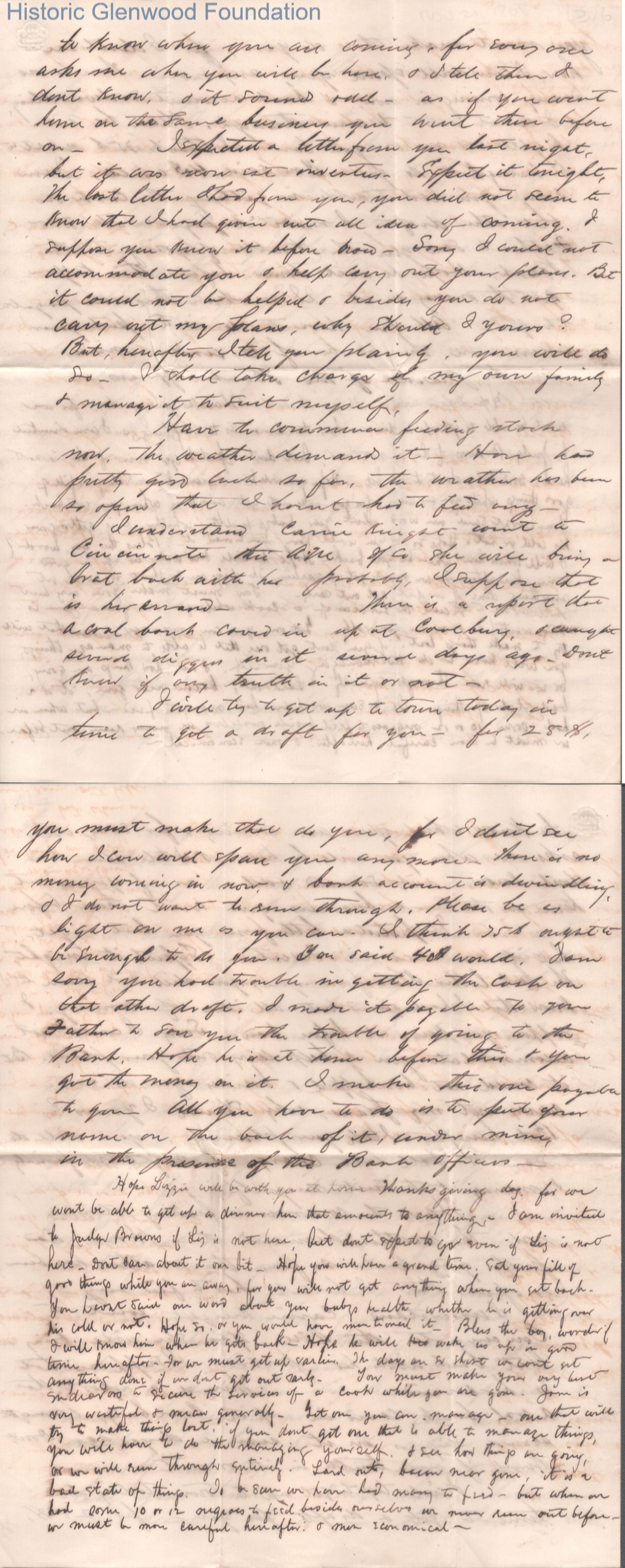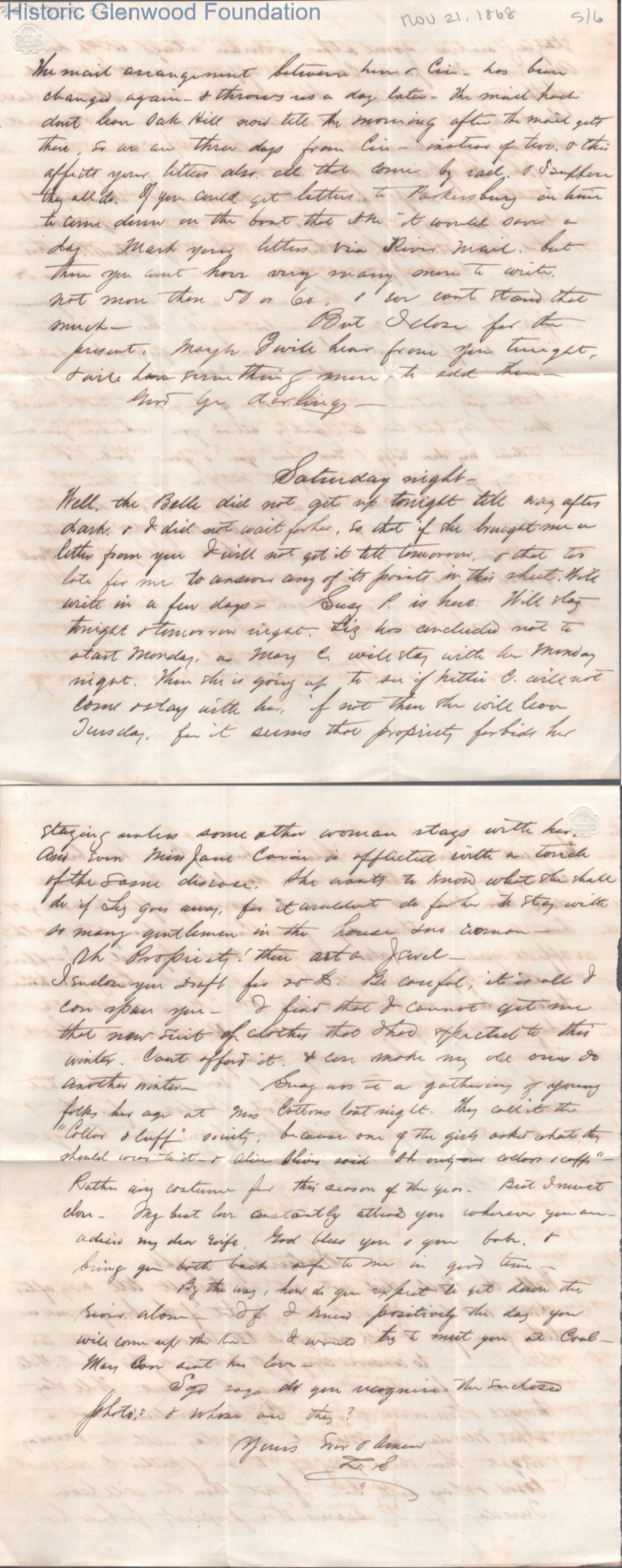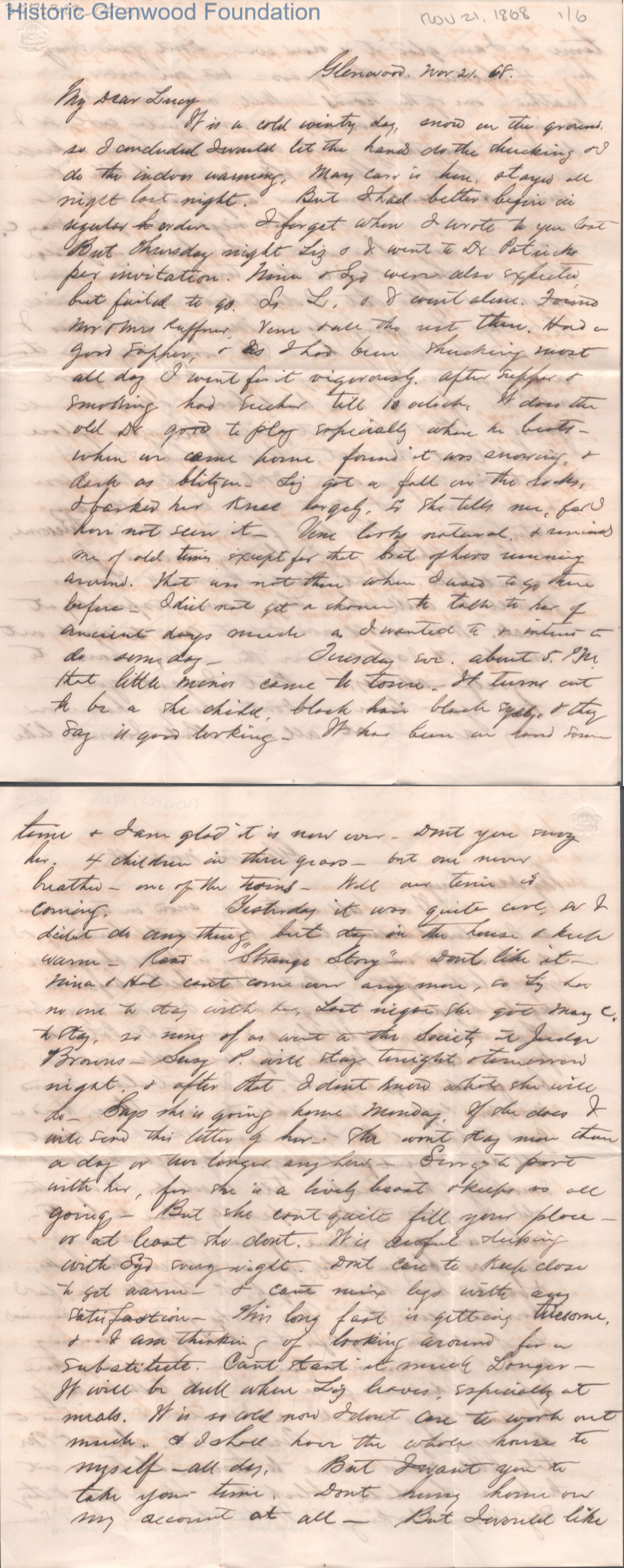 Six-page letter to Lucy W. Summers from Lewis Summers, Nov 21, 1868.