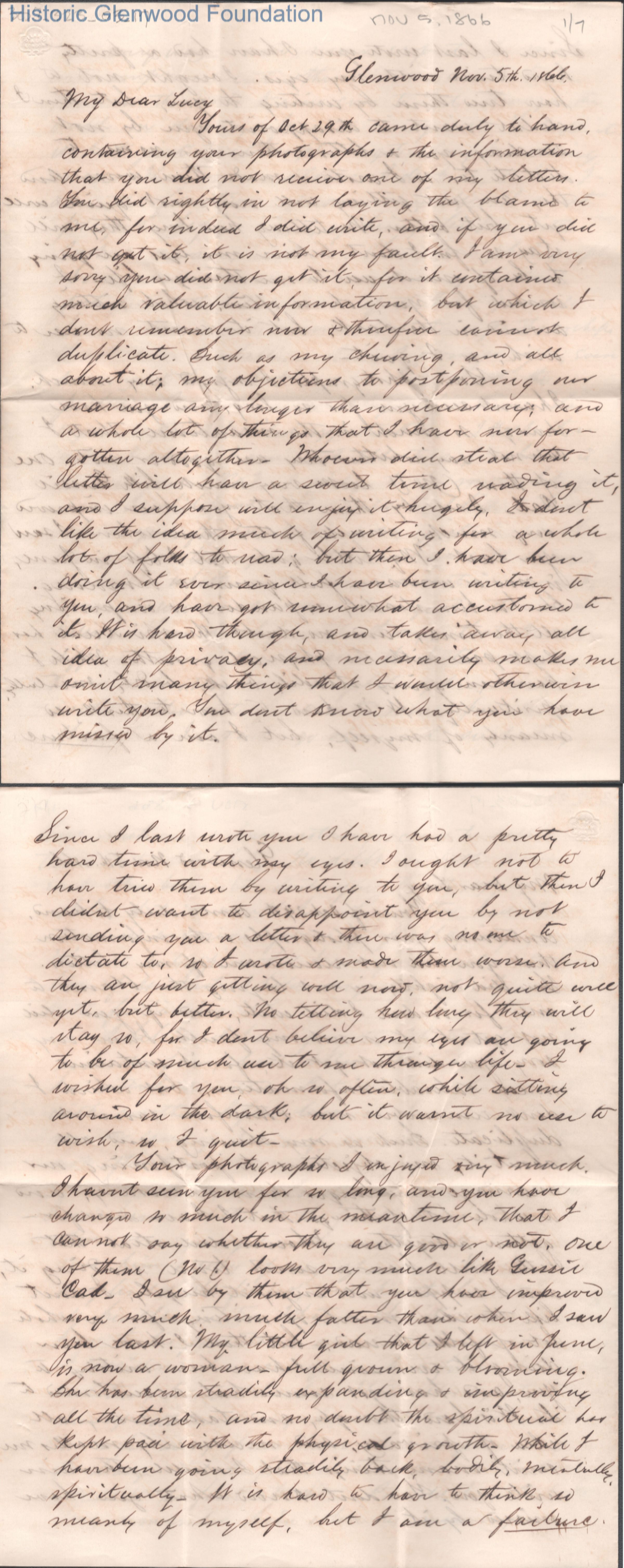 Lucy W. Summers from Lewis Summers, Nov 5, 1866