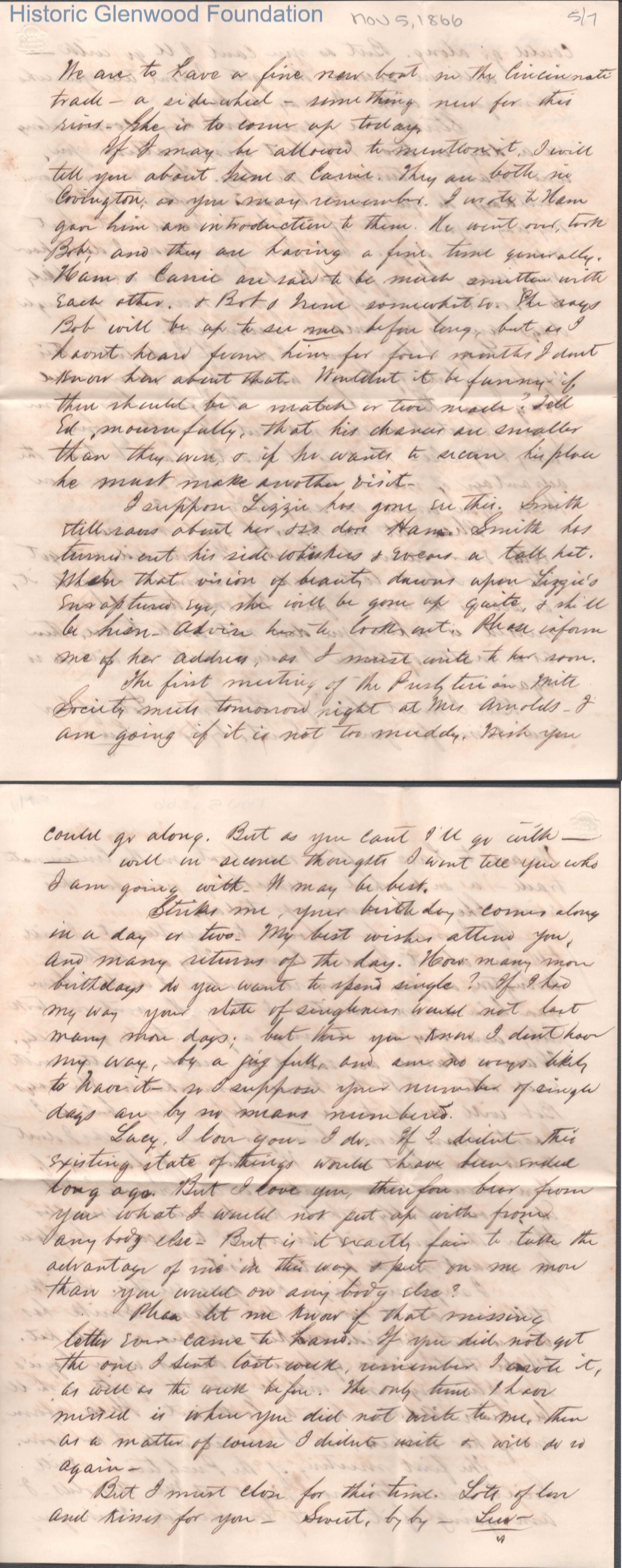 Seven-page letter to Lucy W. Summers from Lewis Summers, Nov 5, 1866.