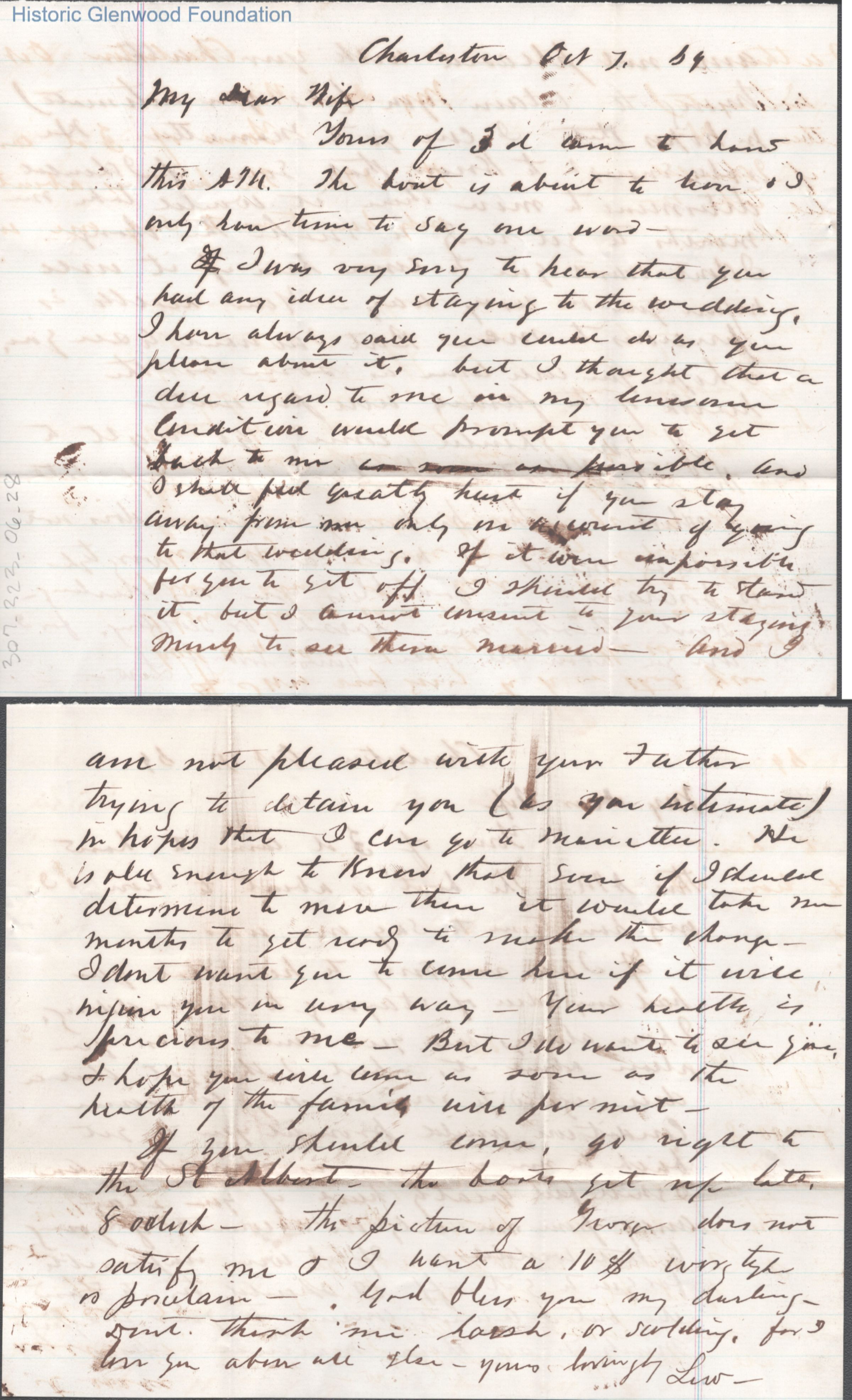 Two-page letter to Lucy W. Summers from Lewis Summers, Oct 7, 1869.