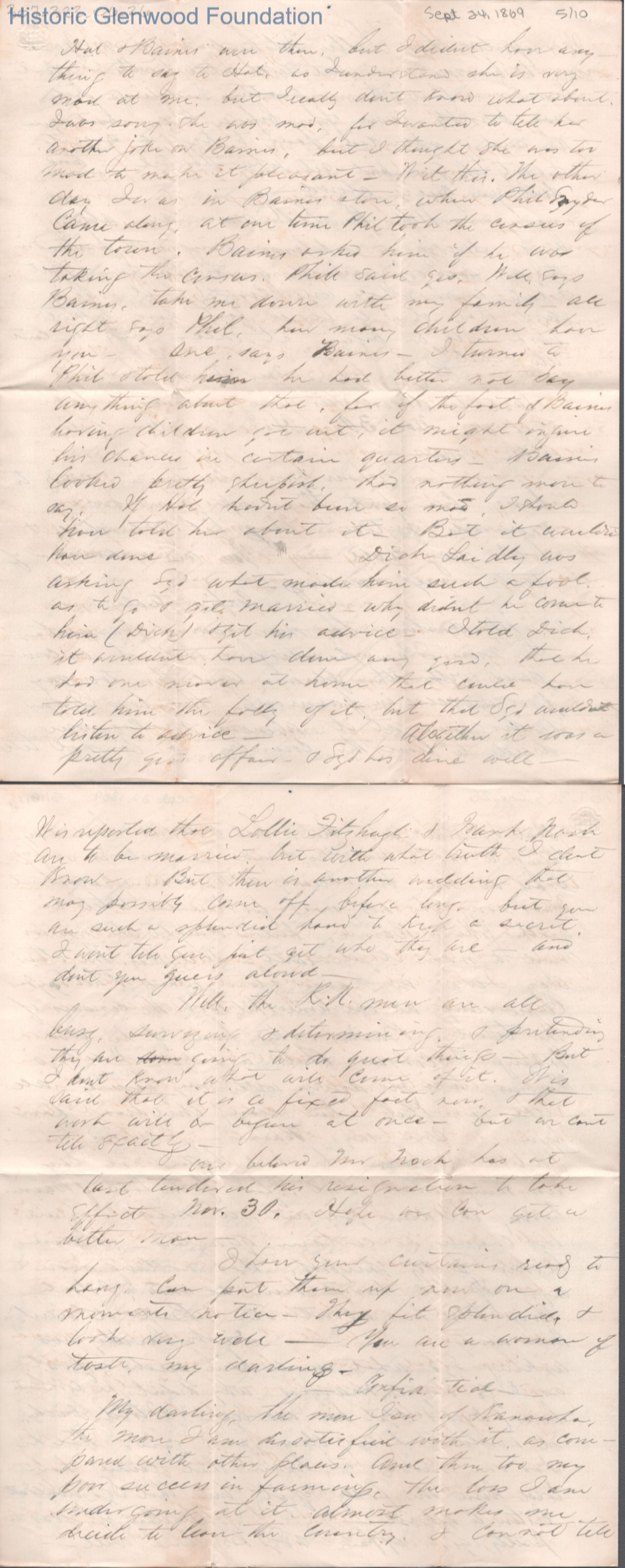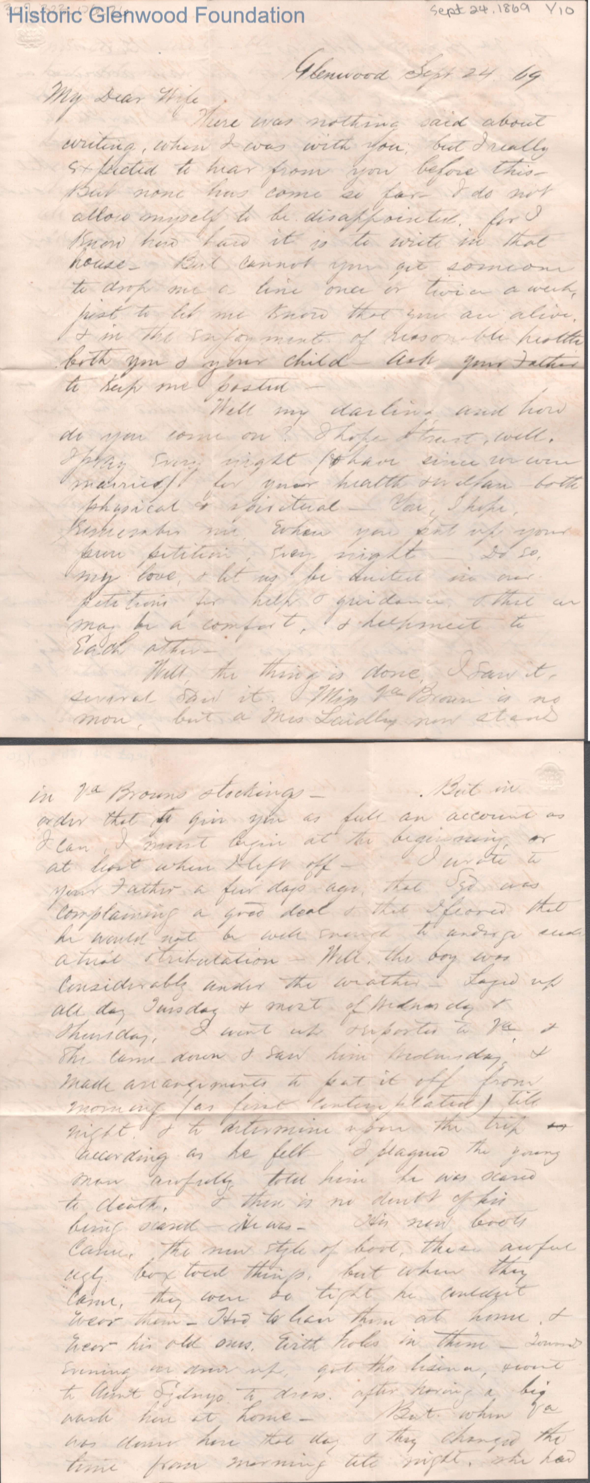 Ten-page letter to Lucy W. Summers from Lewis Summers, Sep 24, 1869.