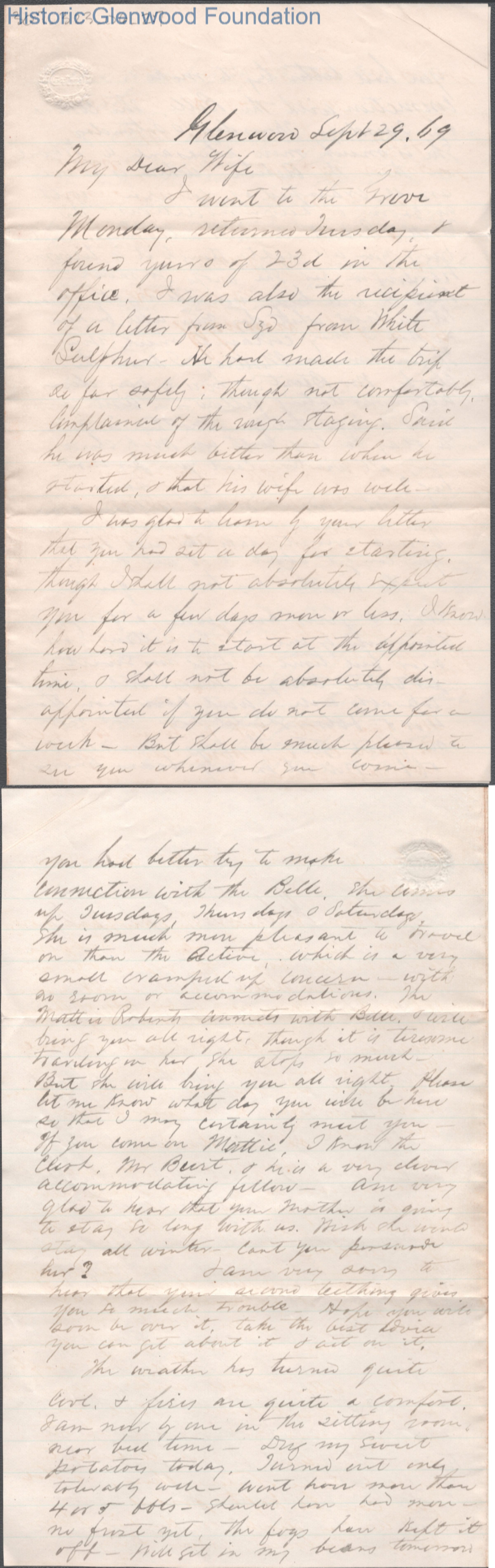 Four-page letter to Lucy W. Summers from Lewis Summers, Sep 29, 1869.