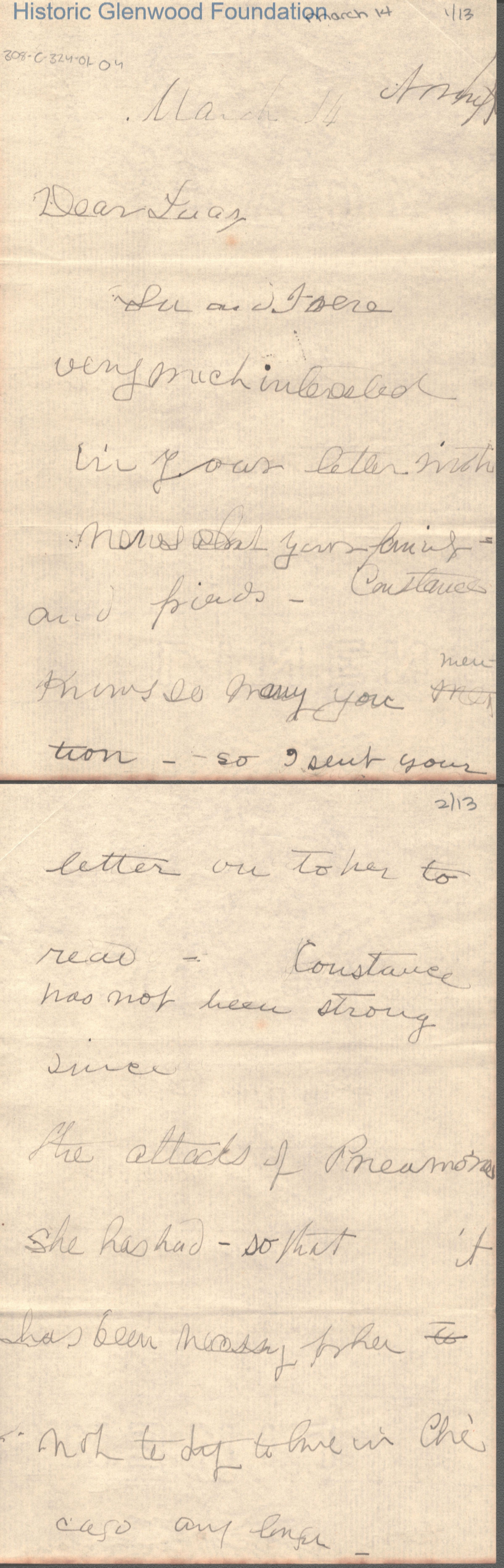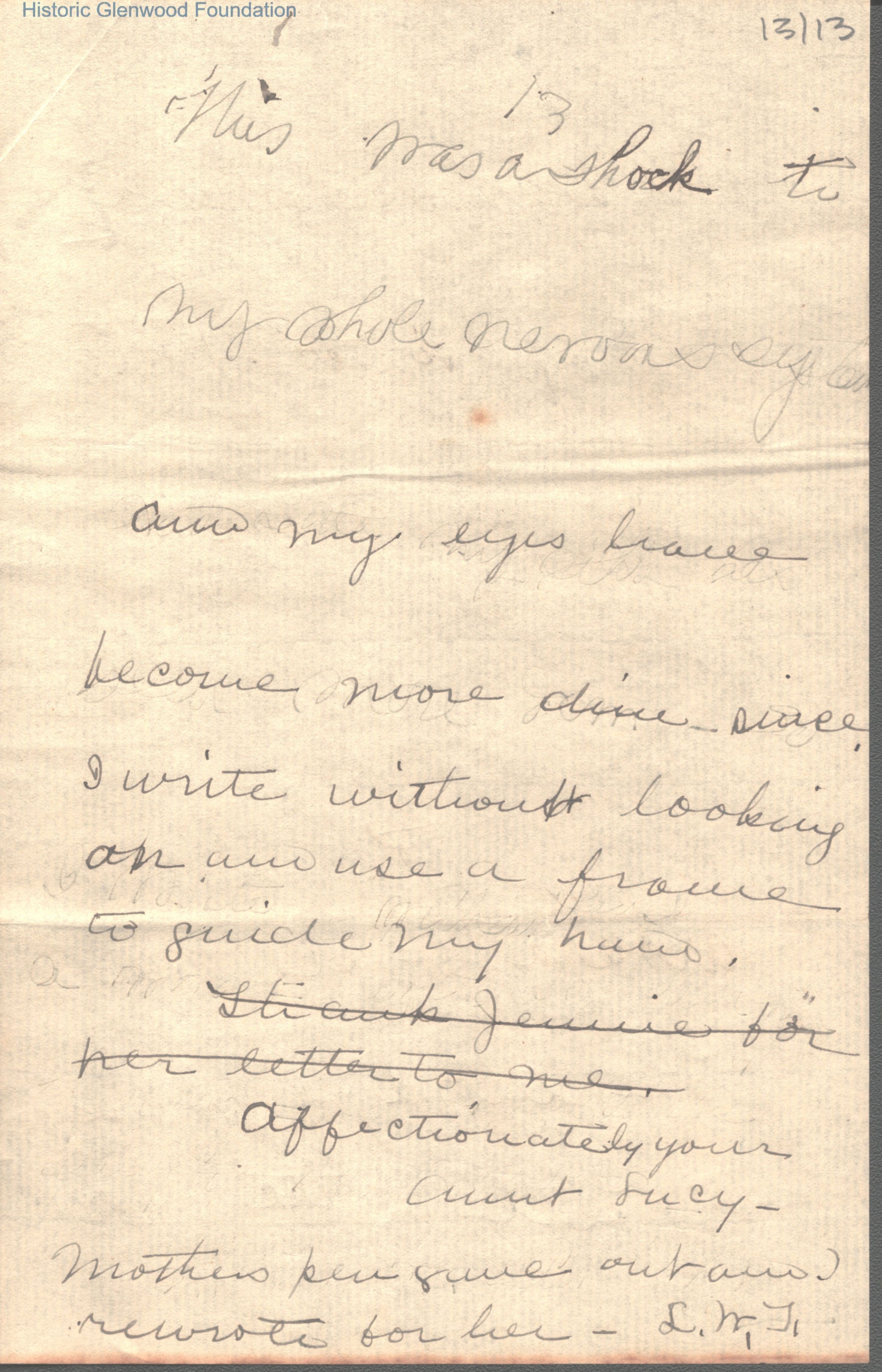 Thirteen page letter to Lucy Summers from Lucy Smith with postscript from Mrs. Smith's daughter, Lucy Smith Thacker.