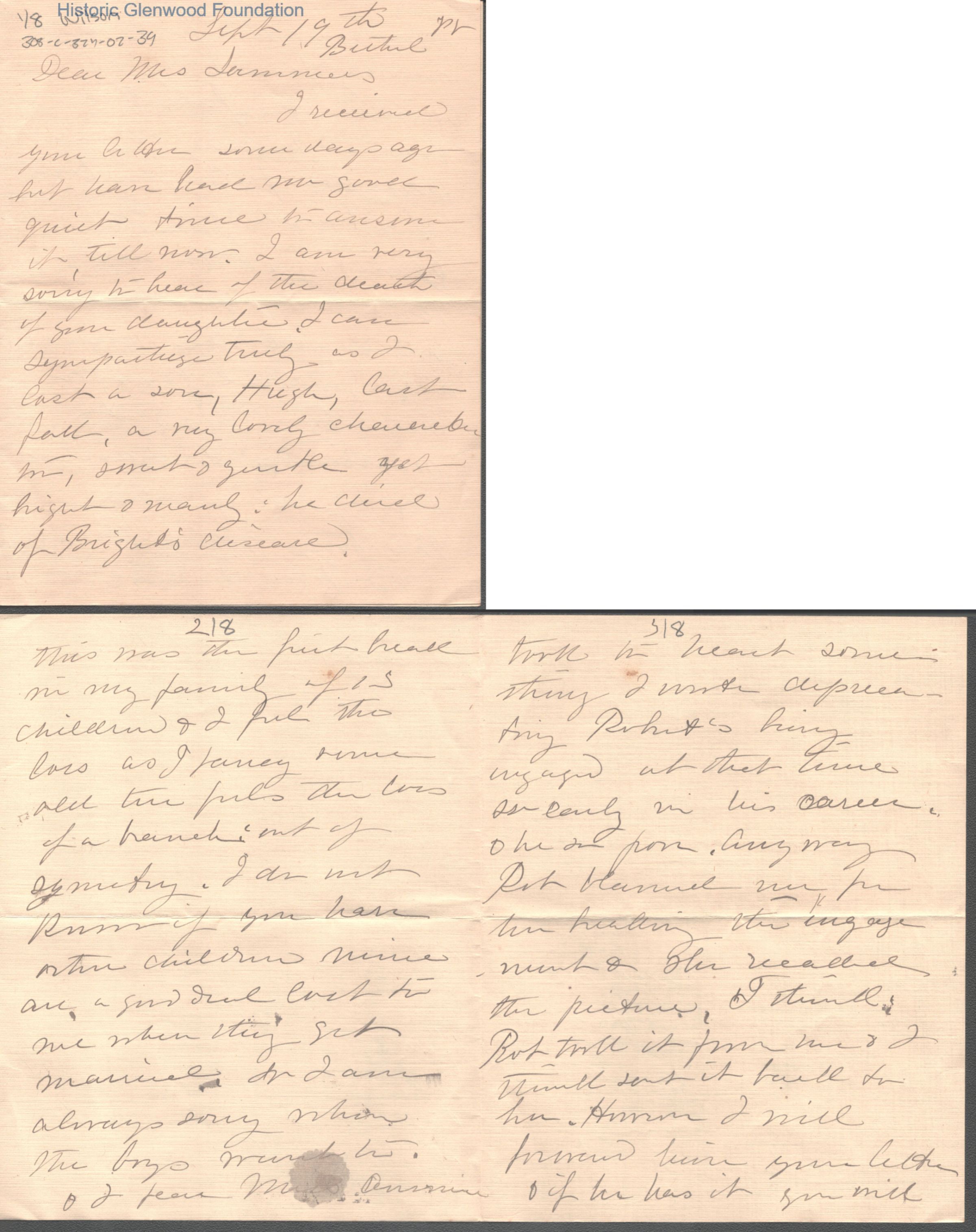 Lucy W. Summers from M. L. Wilson; September 19, no year