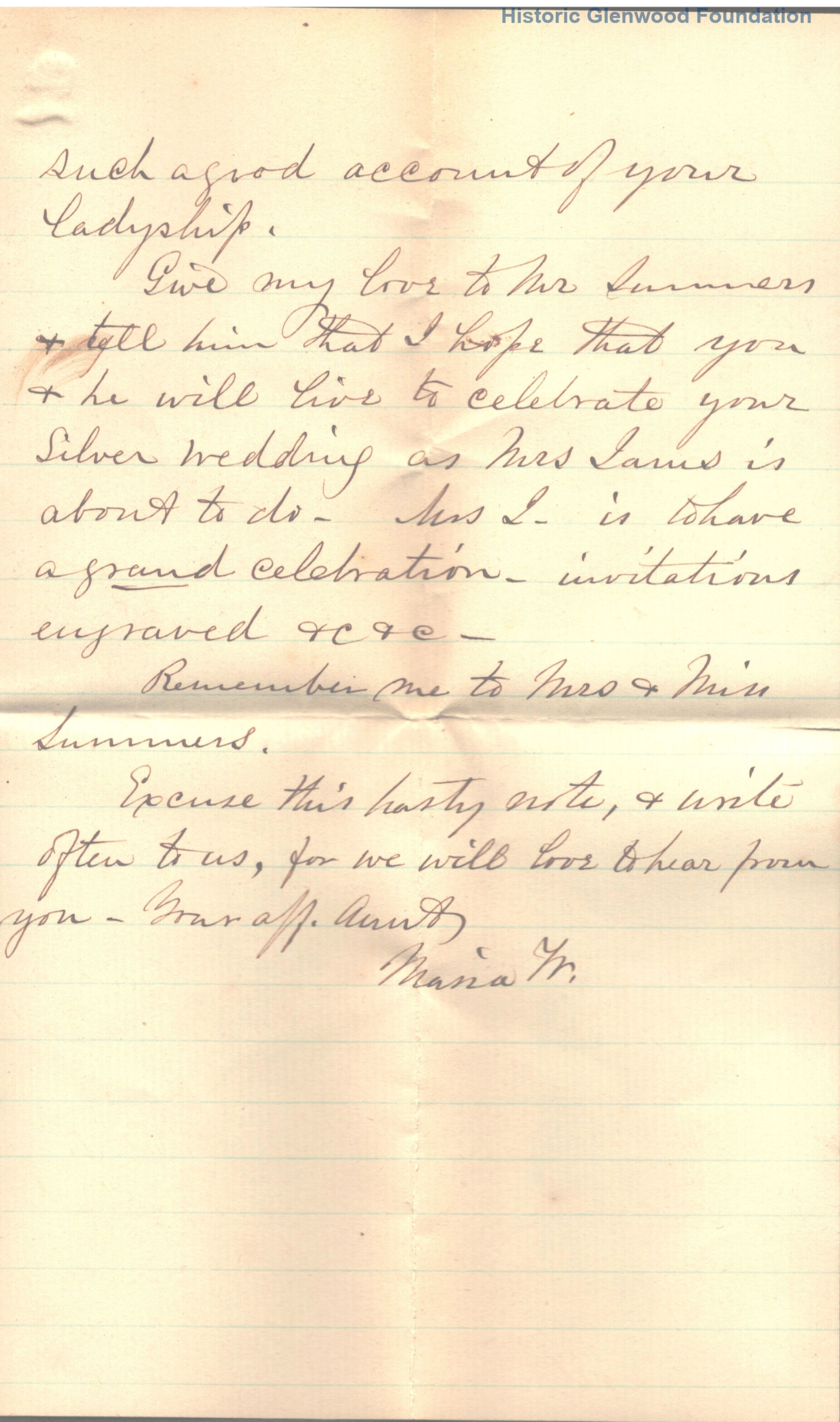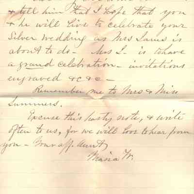 3-page letter to Lucy W. Summers from her aunt Maria Morgan Woodbridge