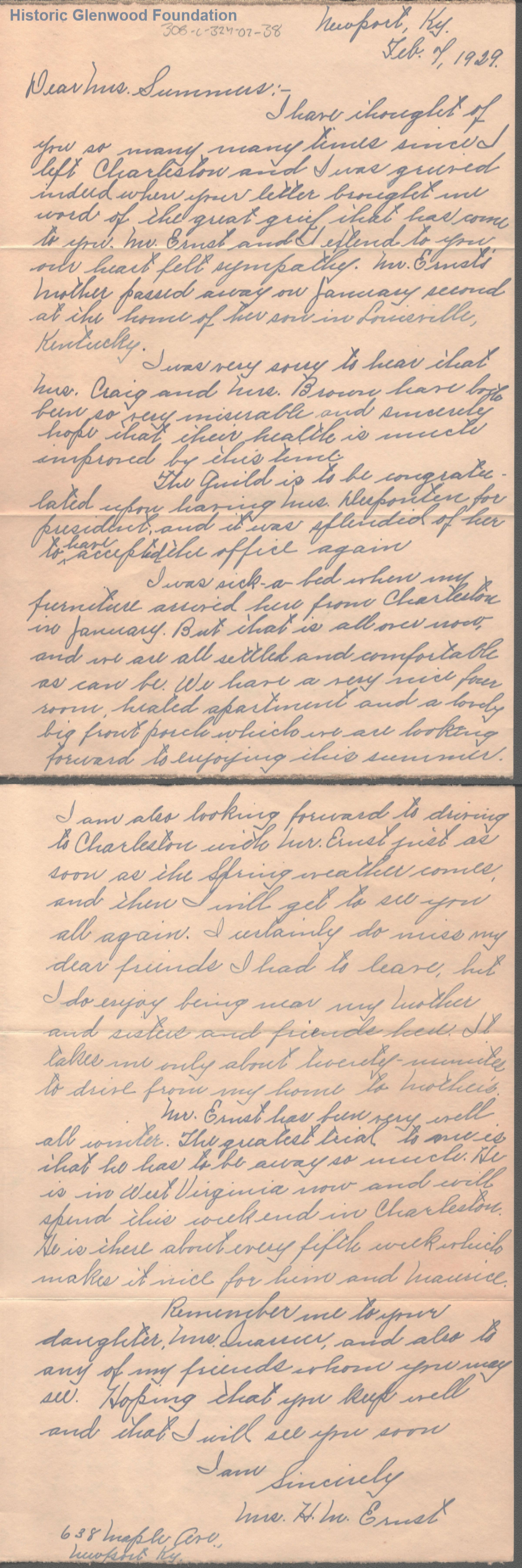 Lucy W. Summers from Mrs. H. W. Ernest; February 7, 1929