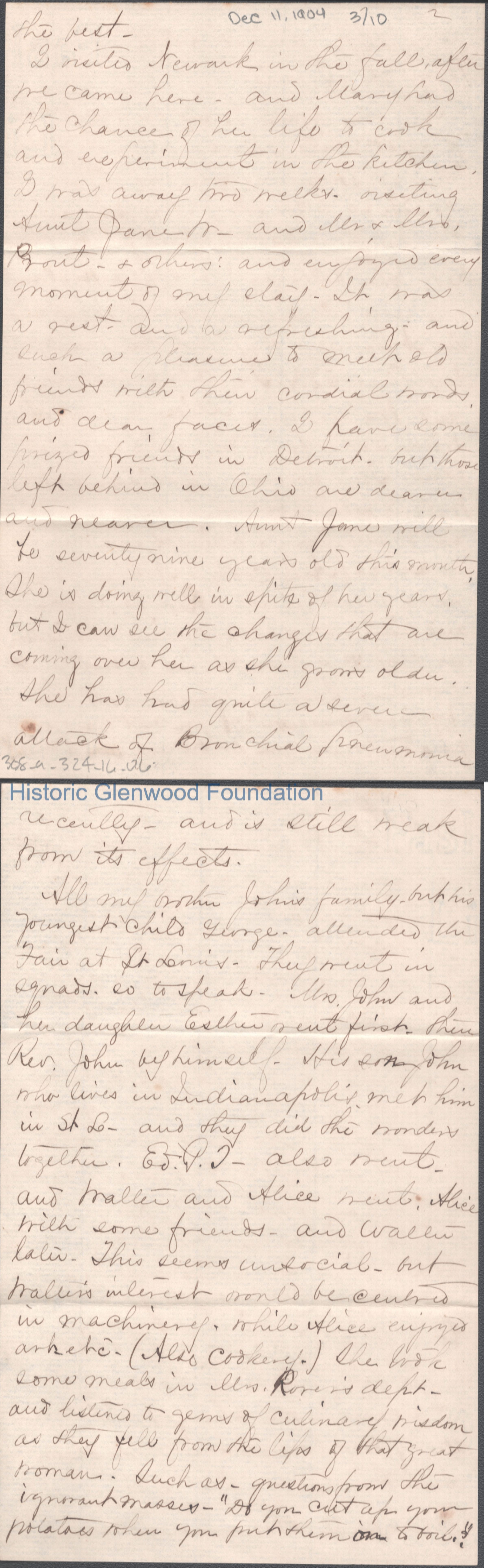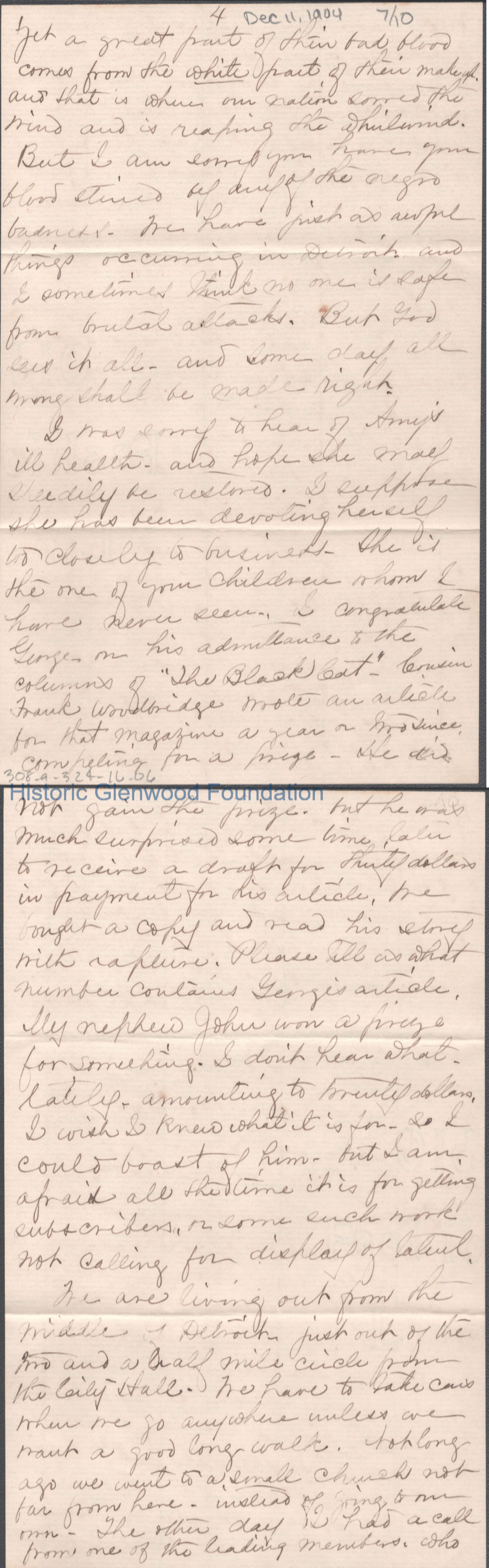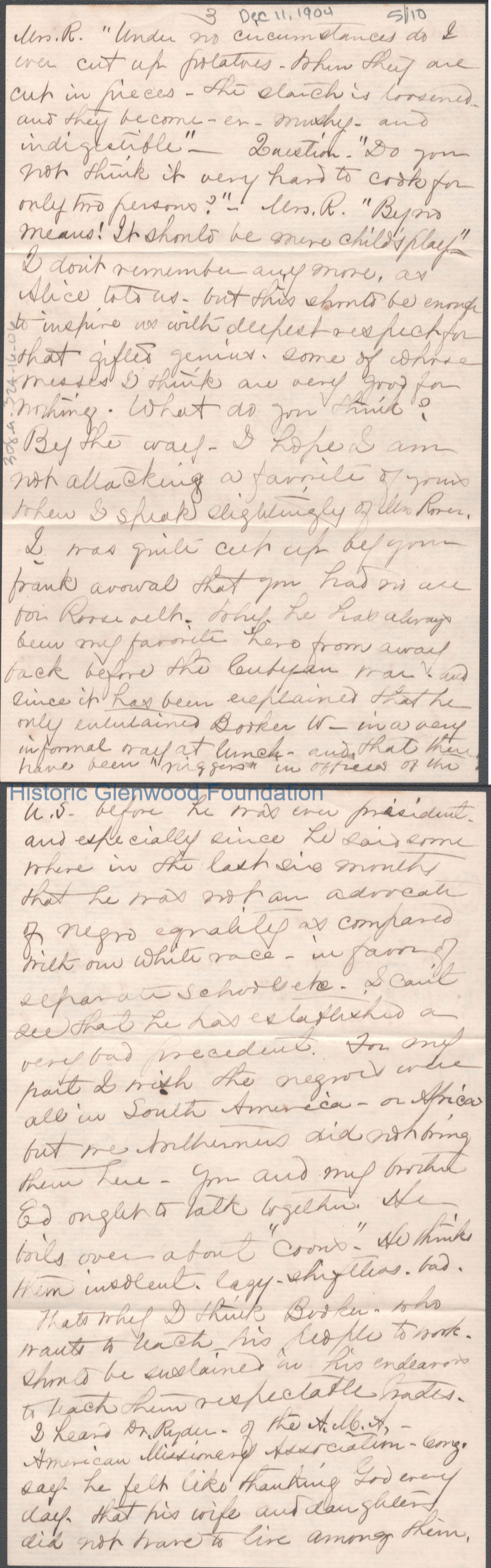 Ten-page letter to Lucy W. Summers from Naomi T. Newkirk, Dec 11, 1904.