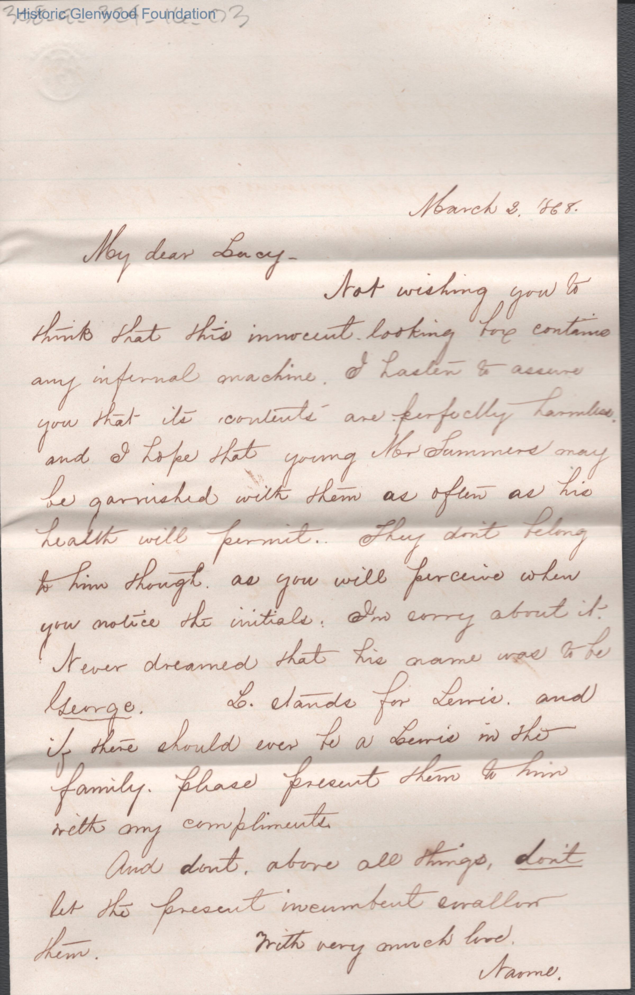 Lucy W. Summers from Naomi T. Newkirk, Mar 2, 1868