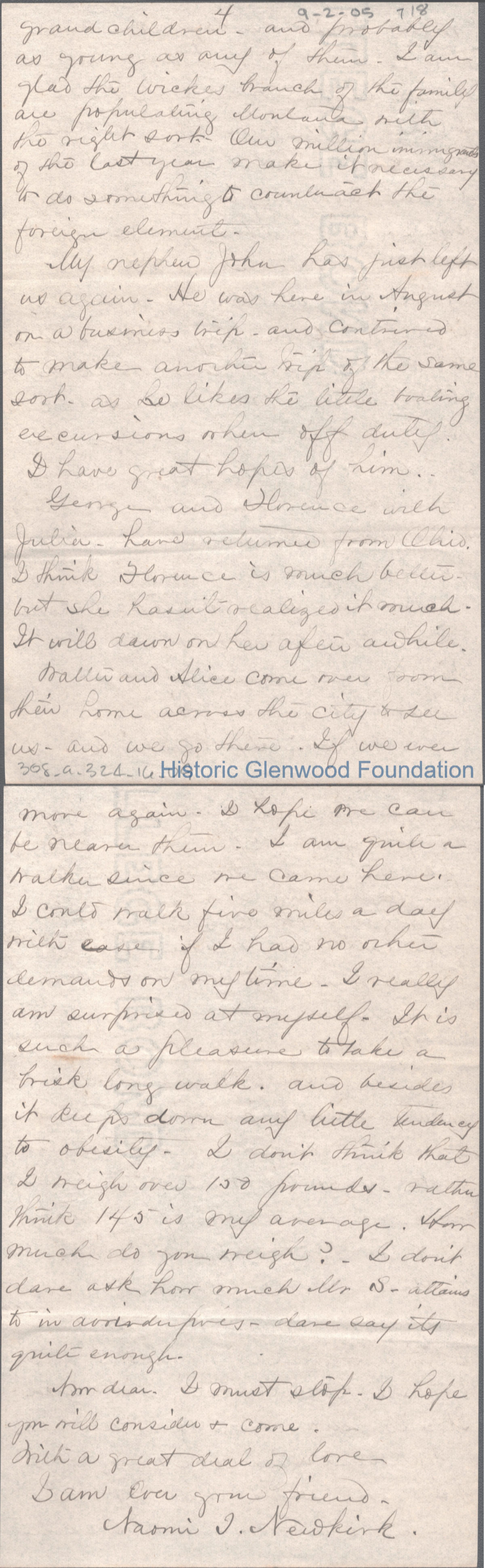 Eight-page letter to Lucy W. Summers from Naomi T. Newkirk, Sep 2, 1905.