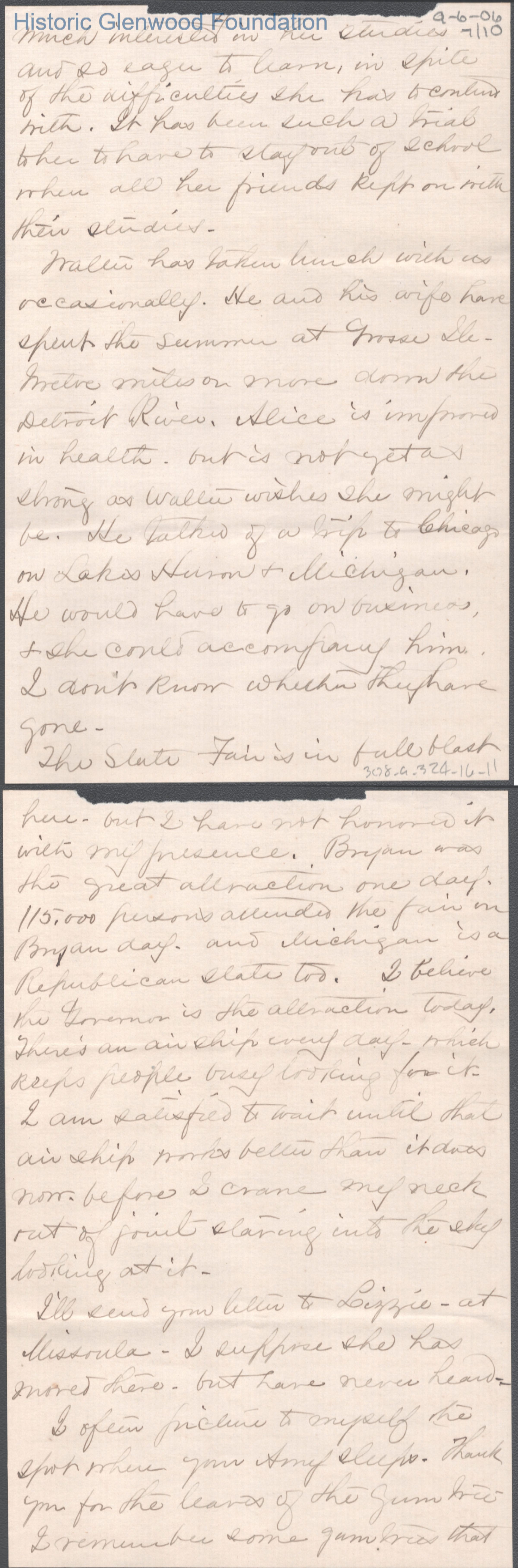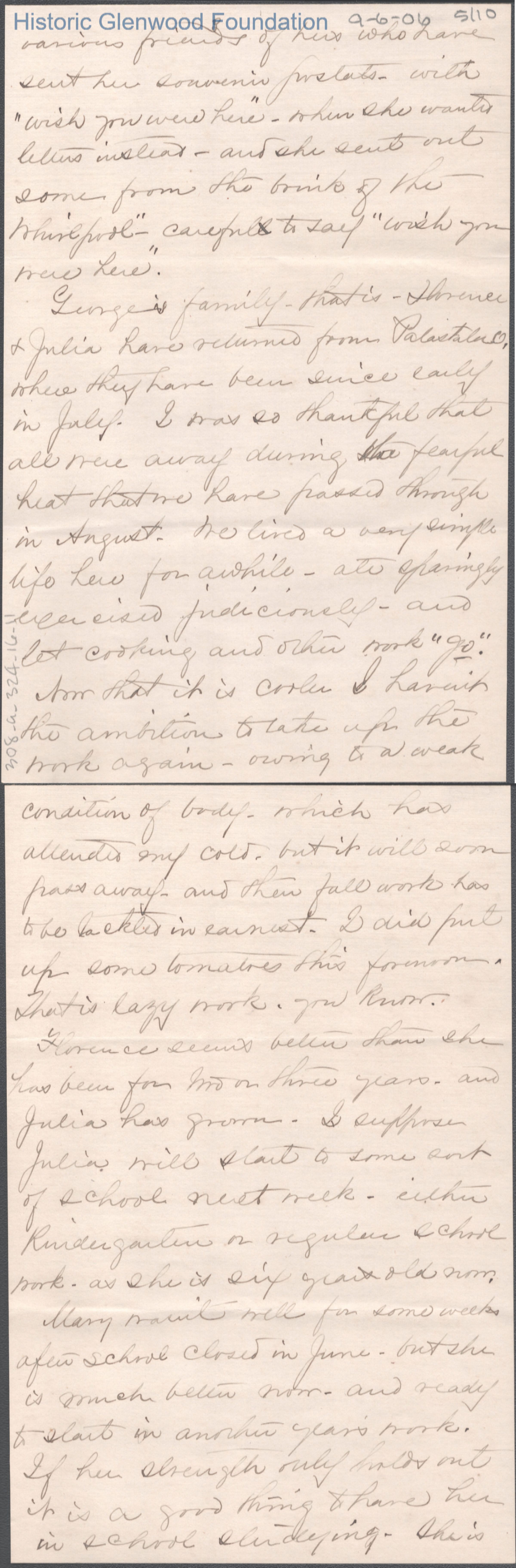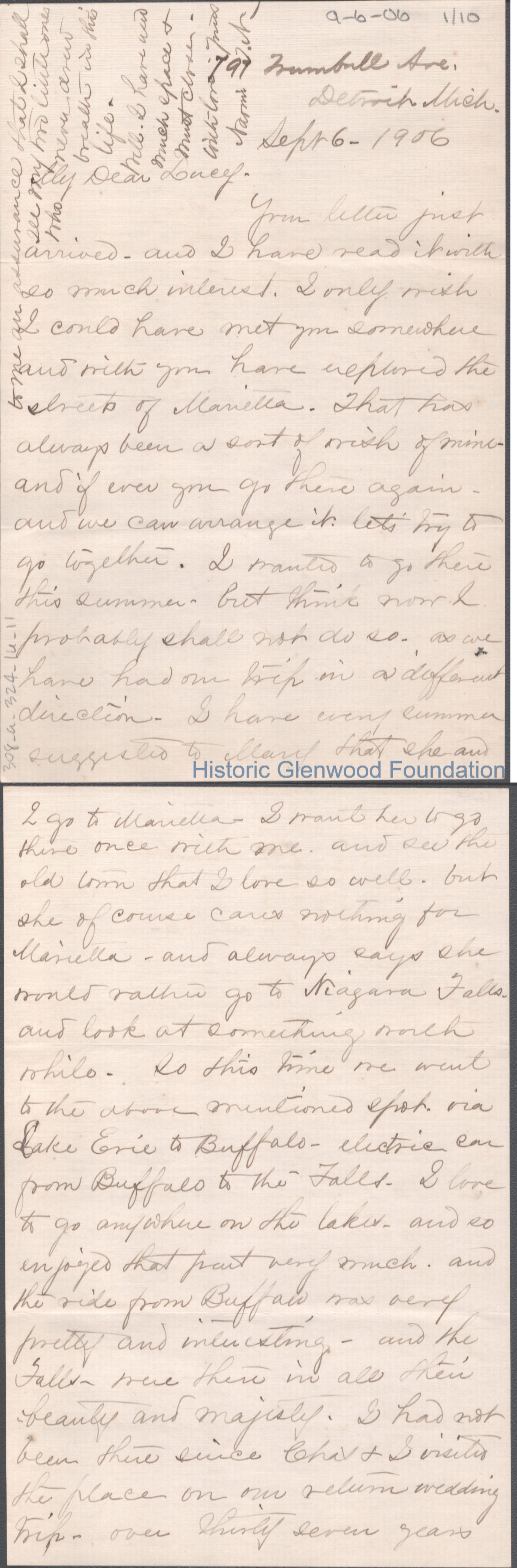 Ten-page letter to Lucy W. Summers from Naomi T. Newkirk, Sep 6, 1906.