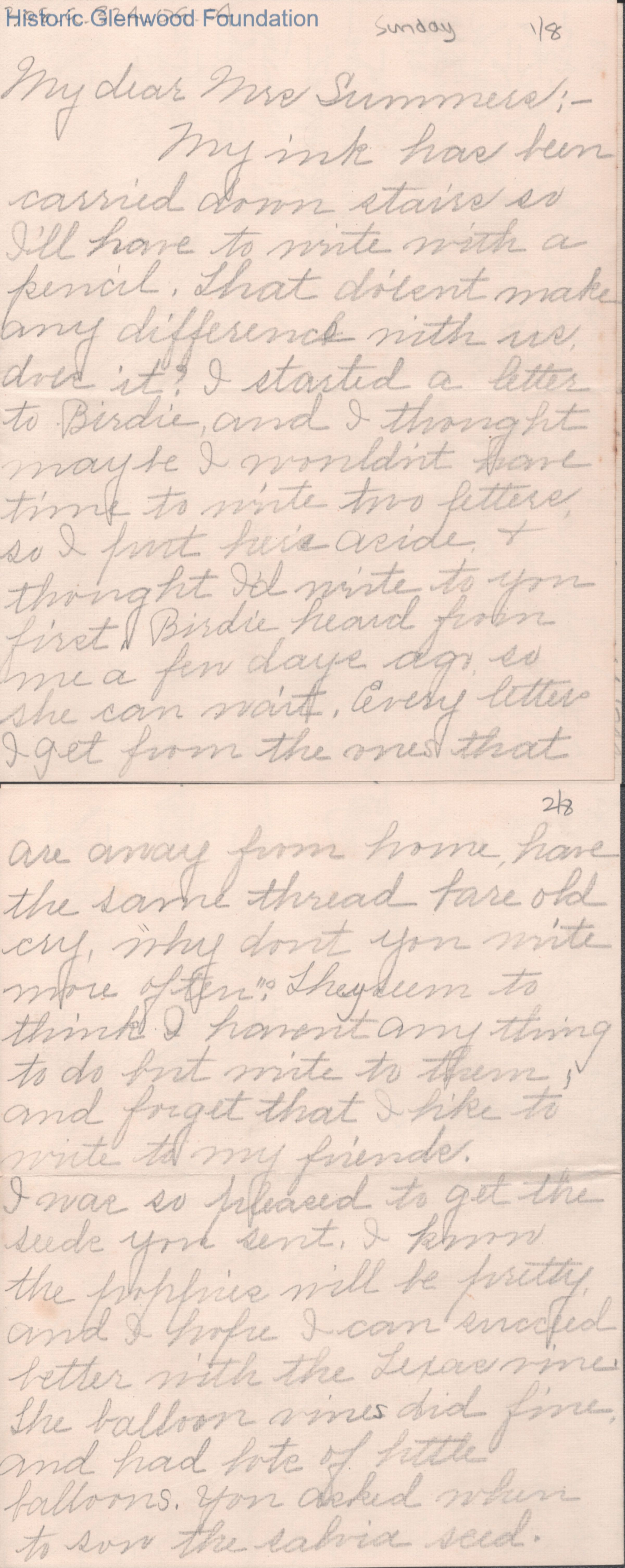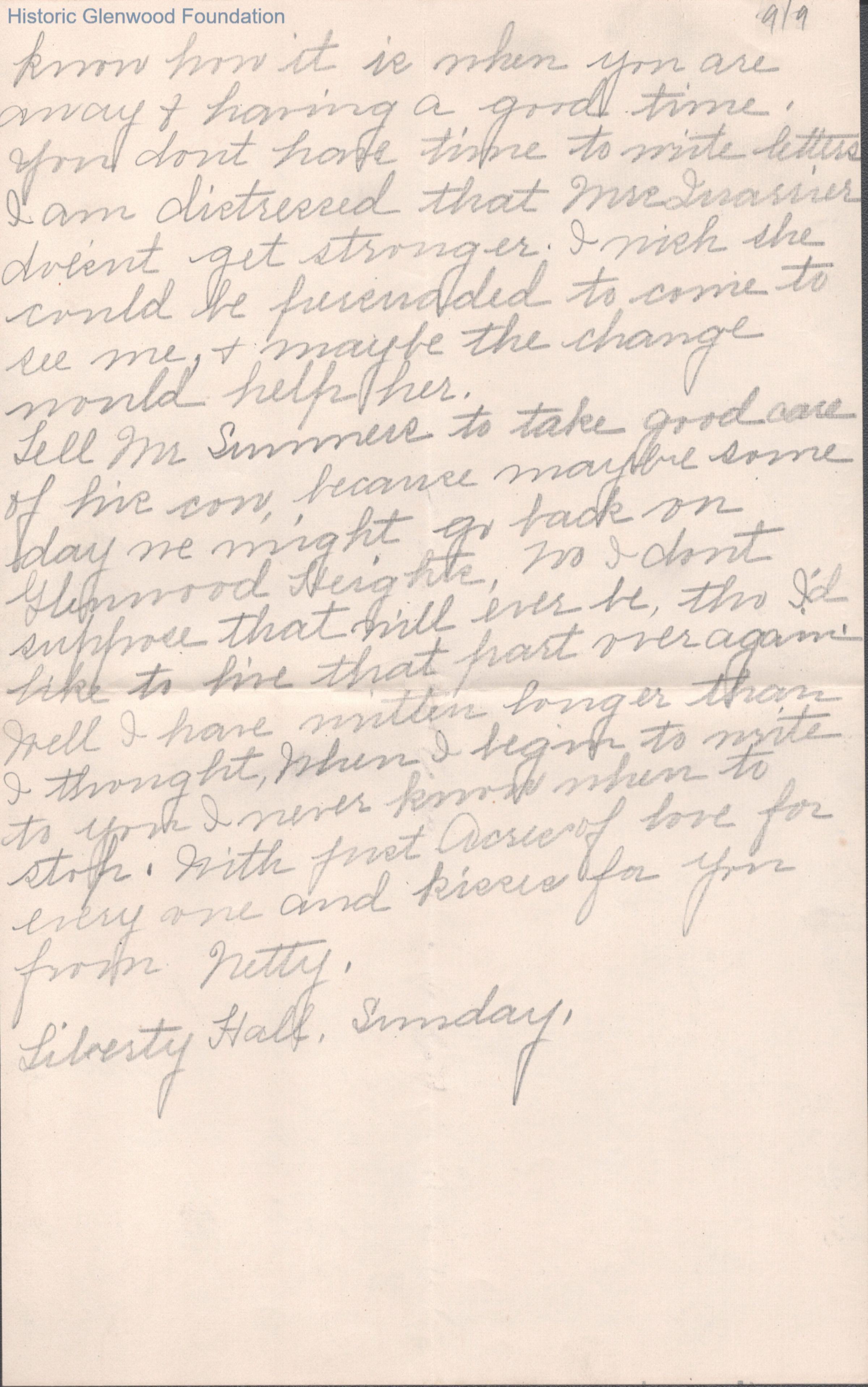 Eight-page letter to Lucy W. Summers from Netty Honaker, no date.