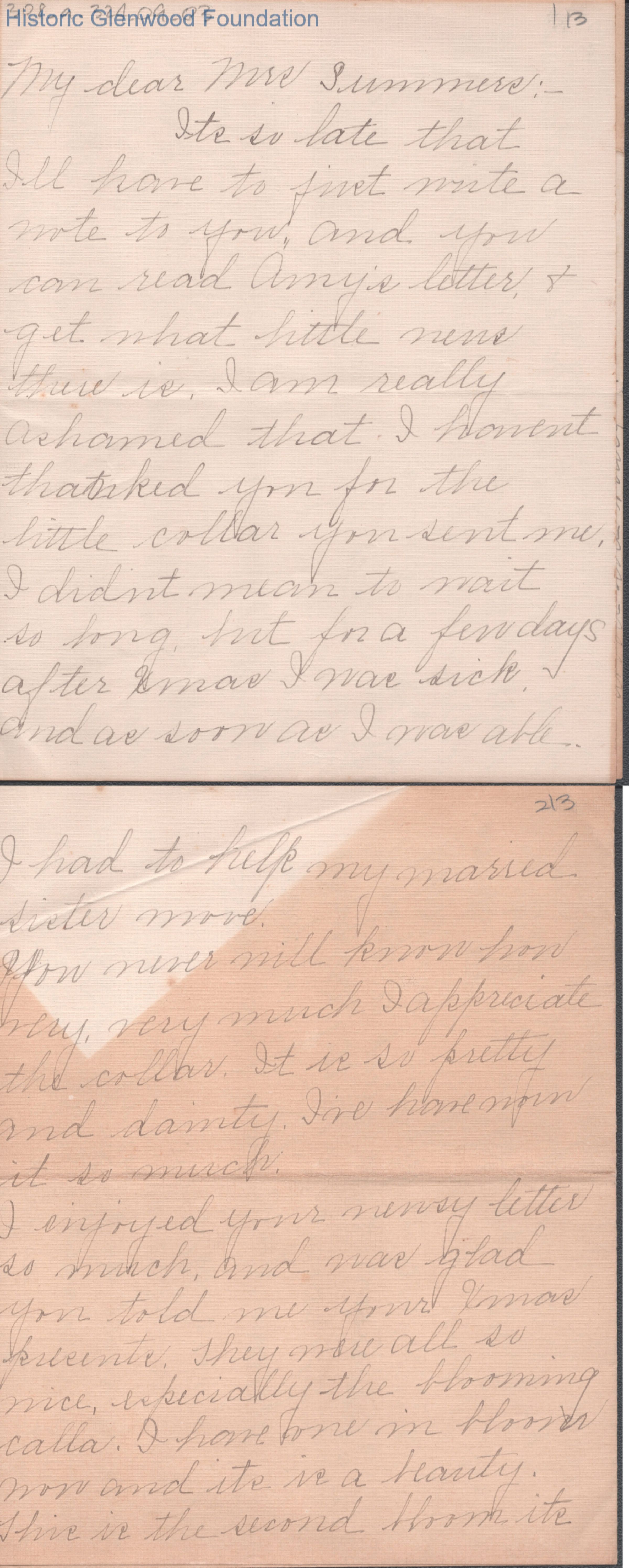 Three-page letter to Lucy W. Summers from Netty Honaker, no date.