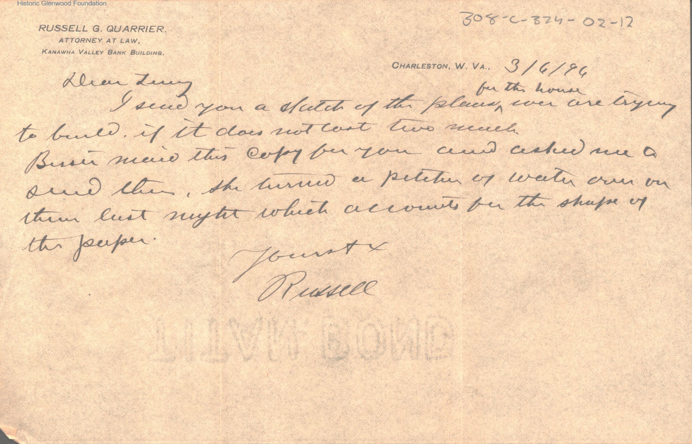 Lucy W. Summers from Russell Quarrier, March 6, 1896