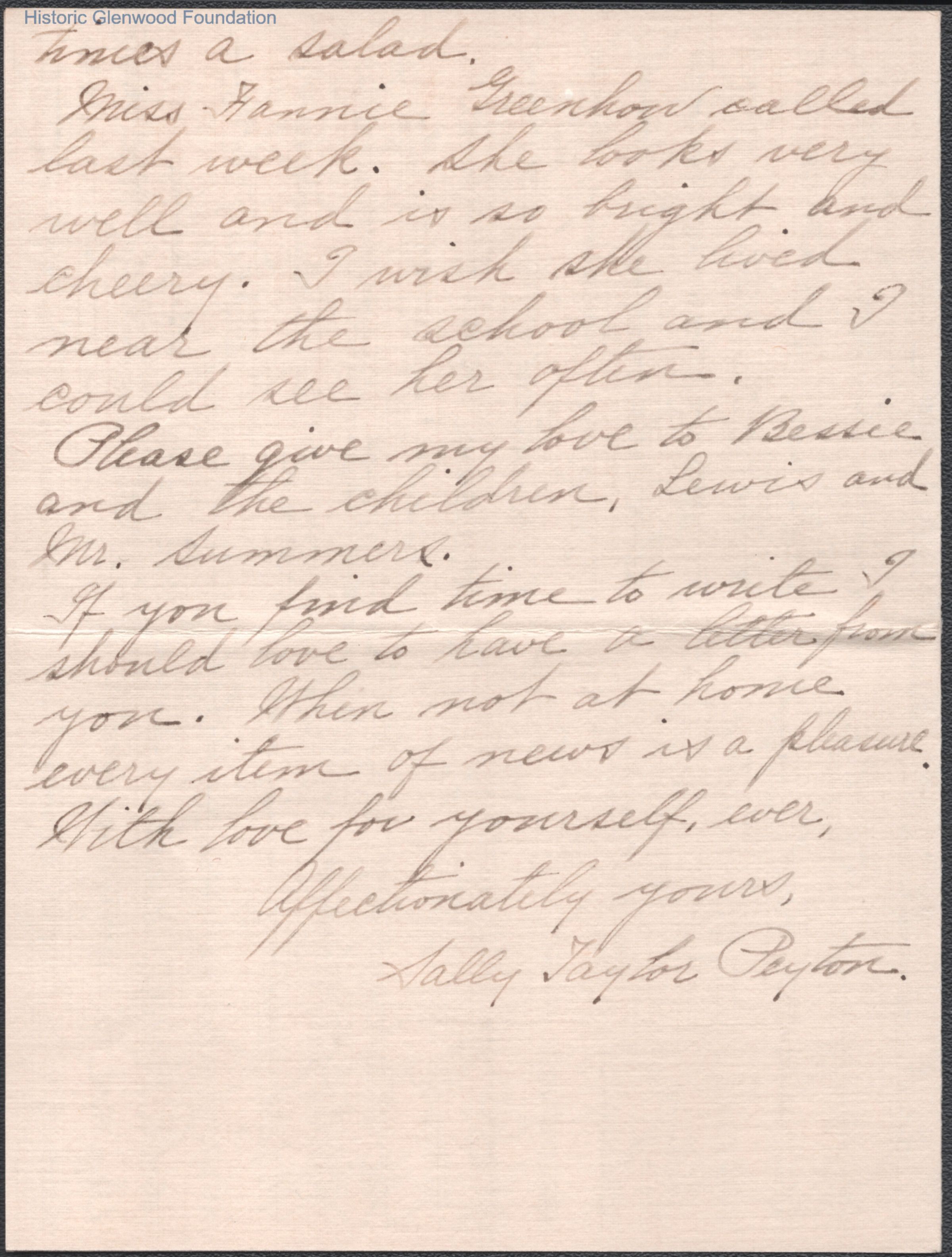 Lucy W. Summers from Sally Taylor Peyton, Sep 25, 1905