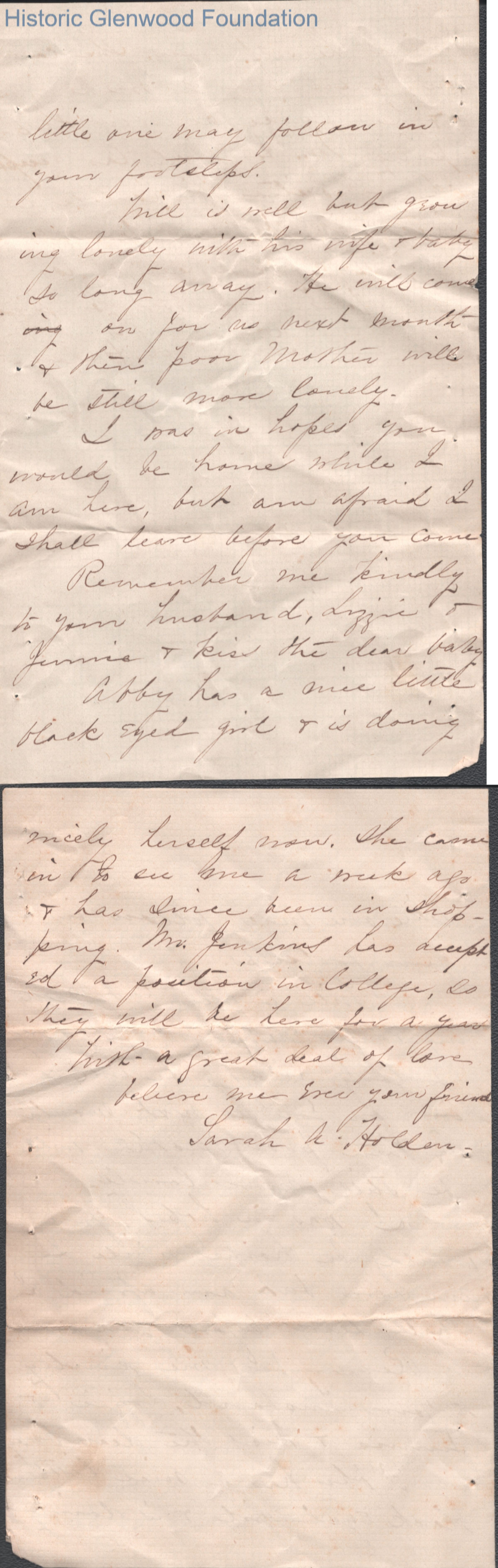 Lucy W. Summers from Sarah A. Holden, no date
