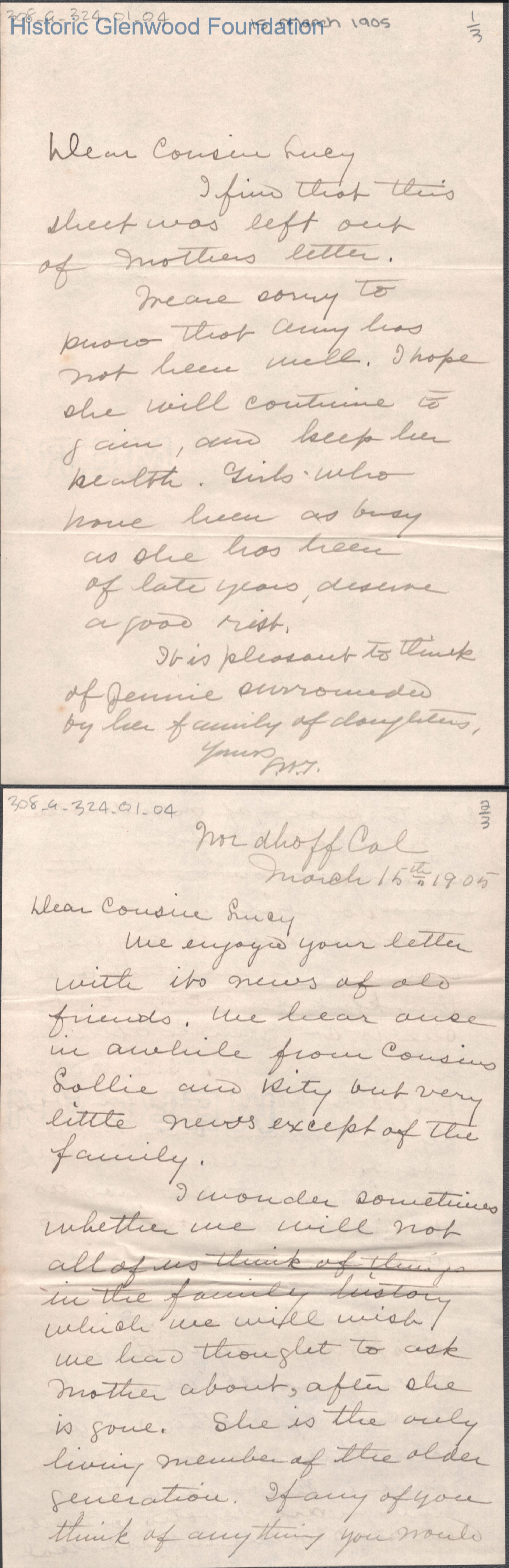 Three-page letter to Lucy W. Summers from unknown sender, Mar 15, 1905.