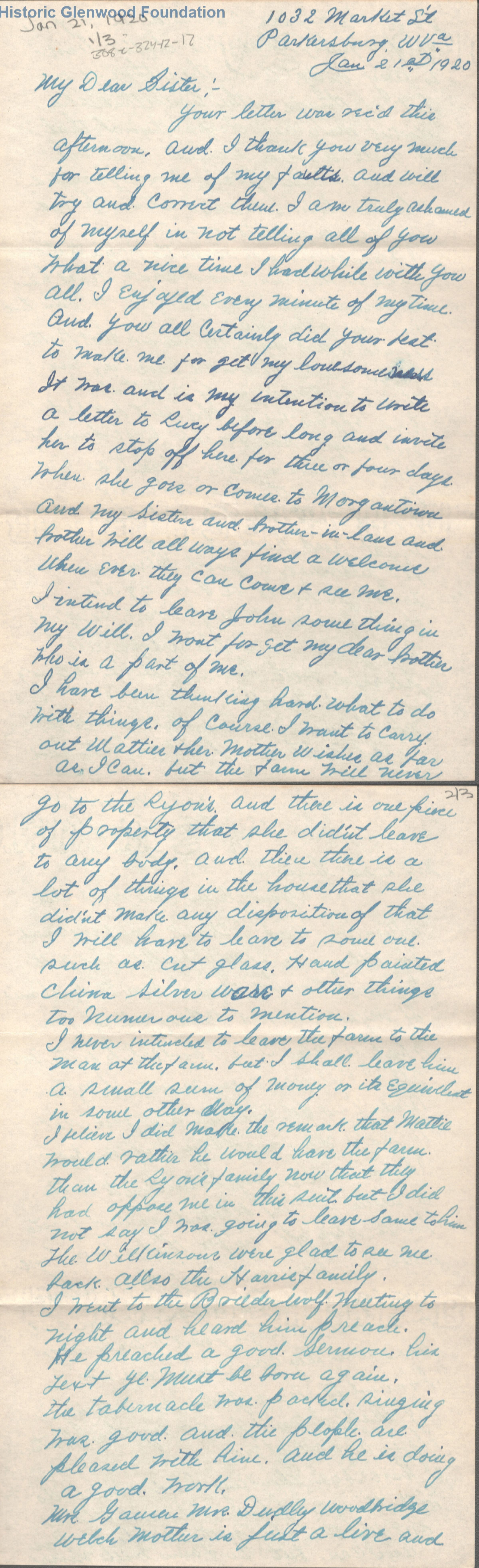 Lucy W. Summers from William D. Woodbridge; January 21, 1920