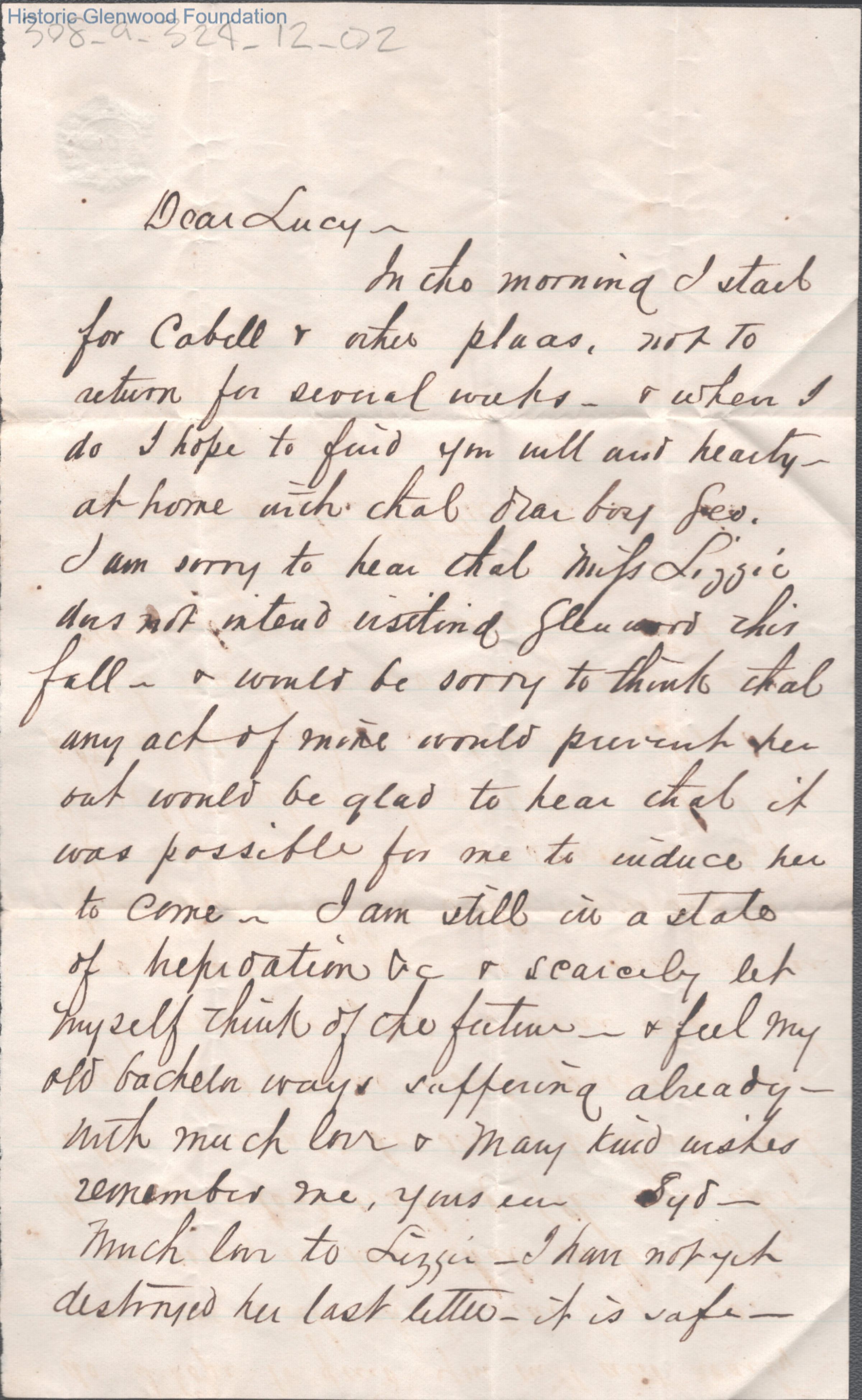 Single page letter to Lucy W. Summers from her husband's uncle William S. Laidley, no date.