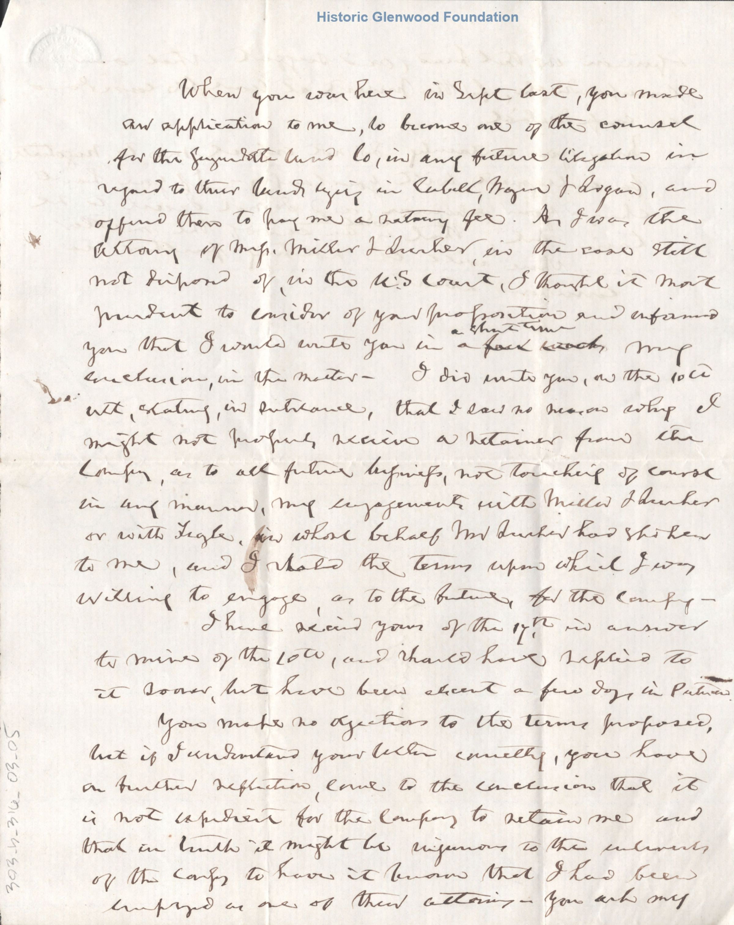 Partial letter from Judge George Summers to unknown recipient re: a possible legal case