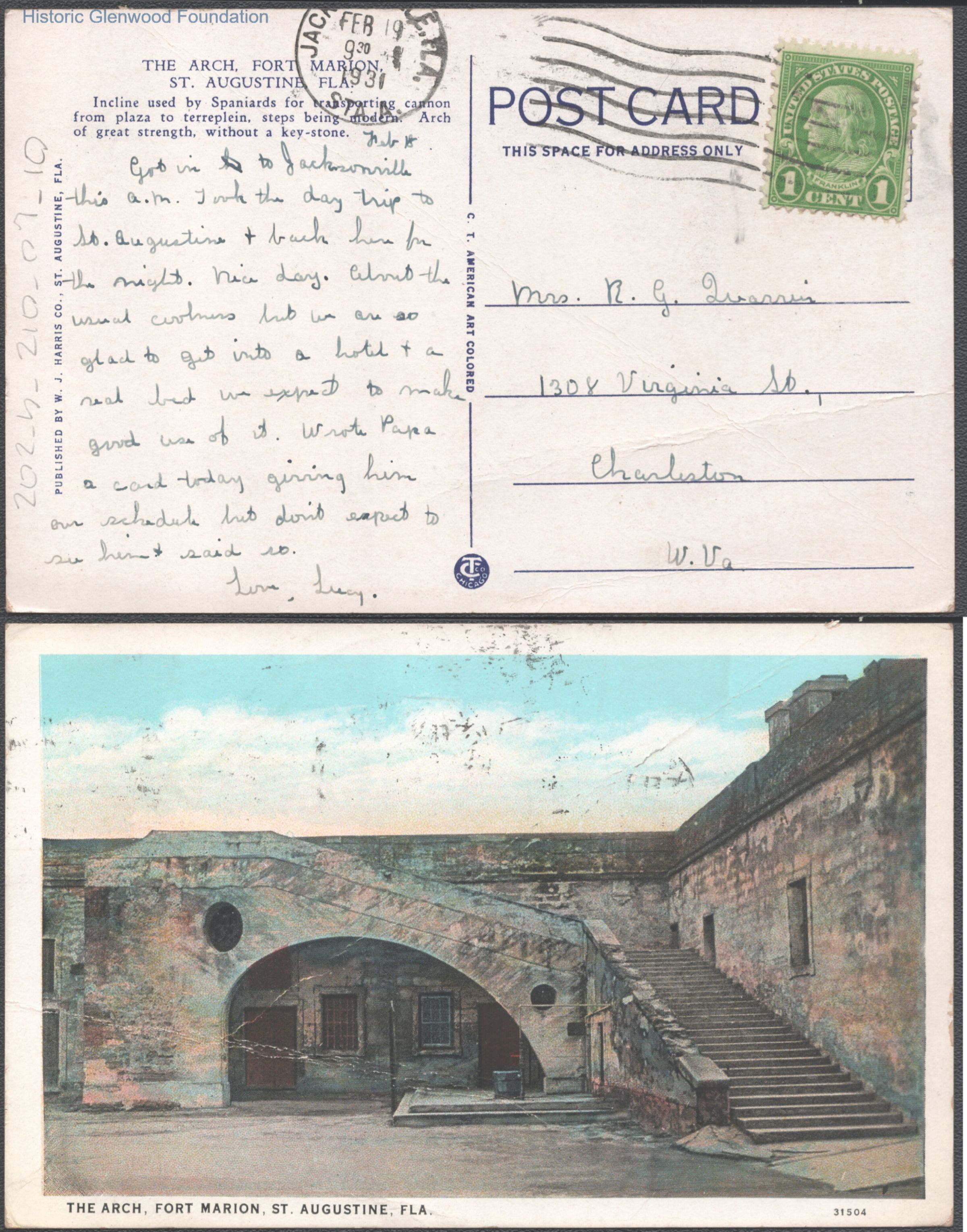 Postcard to Elizabeth S. Quarrier from Lucy S. Quarrier, Feb 19, 1931.