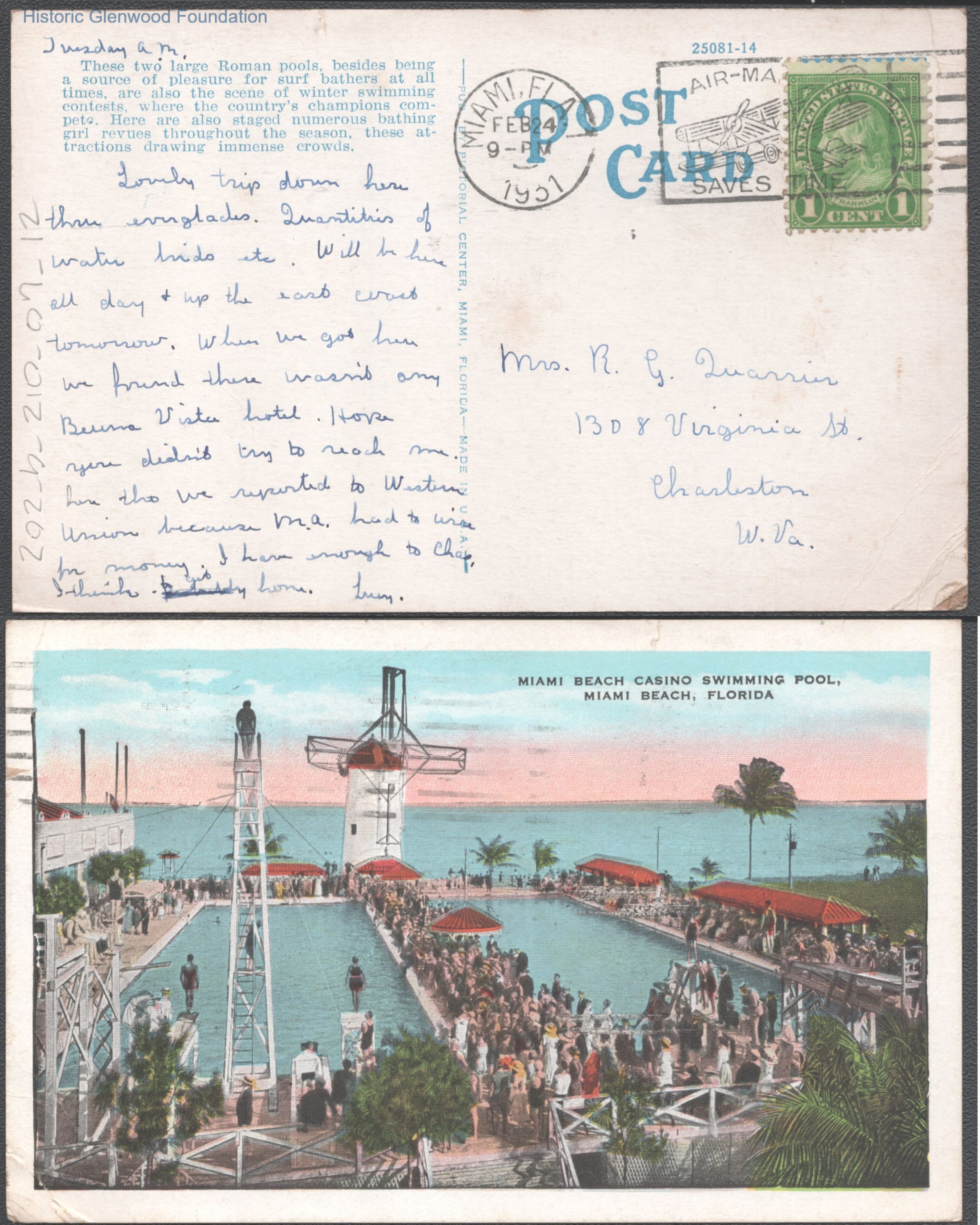 Postcard to Elizabeth S. Quarrier from Lucy S. Quarrier, dated Feb 24, 1931.