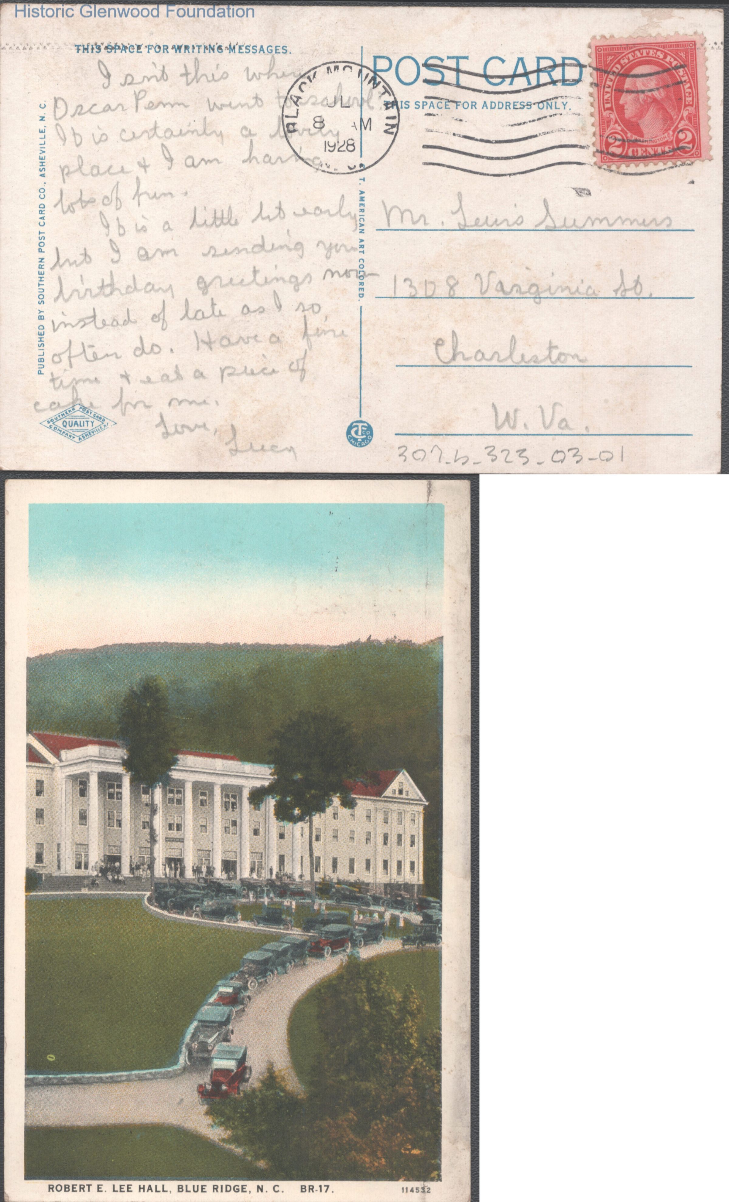 Postcard to Lewis Summers from Lucy S. Quarrier, Jul 8, 1928