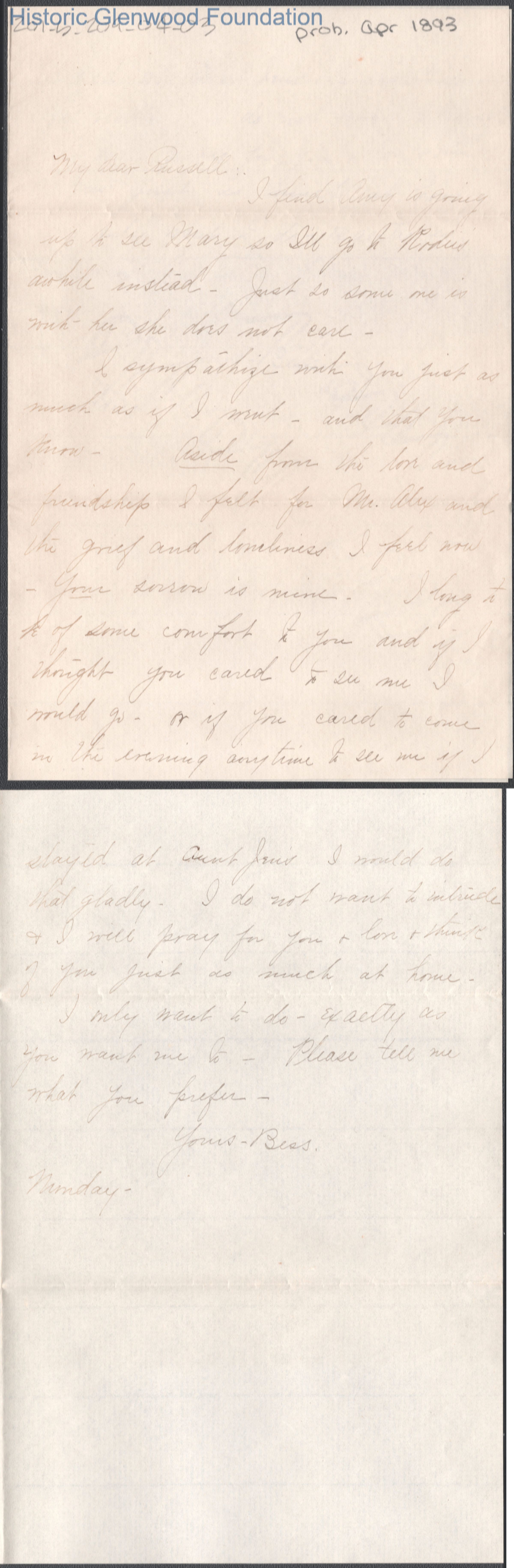 Russell G. Quarrier from Elizabeth S. Quarrier, April 1893