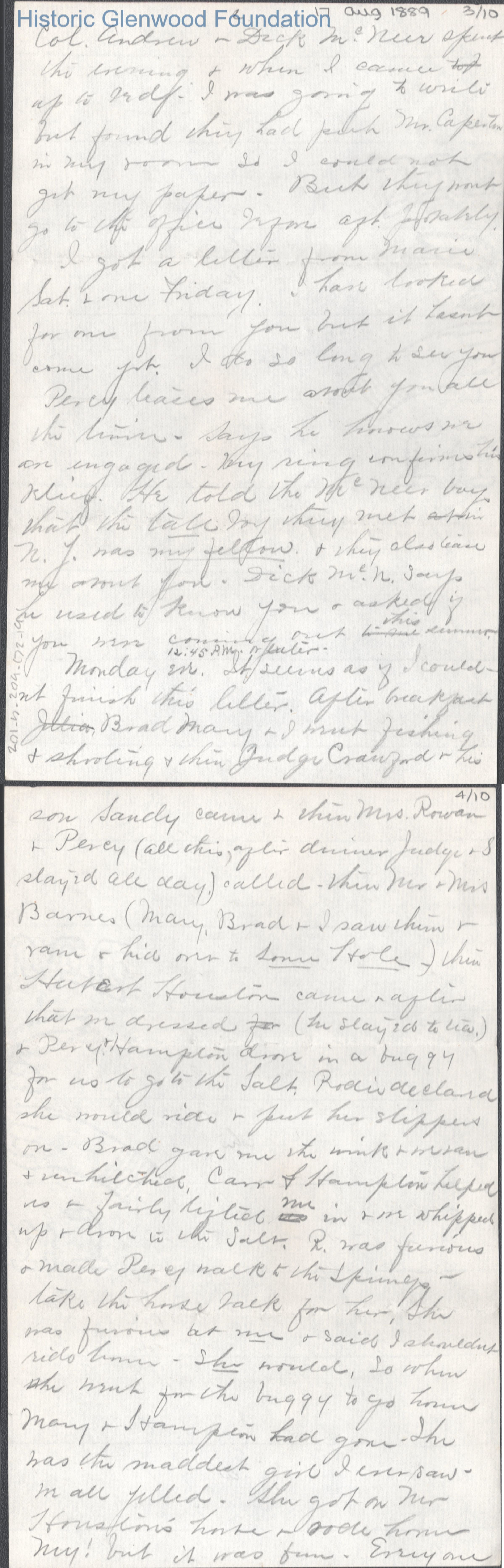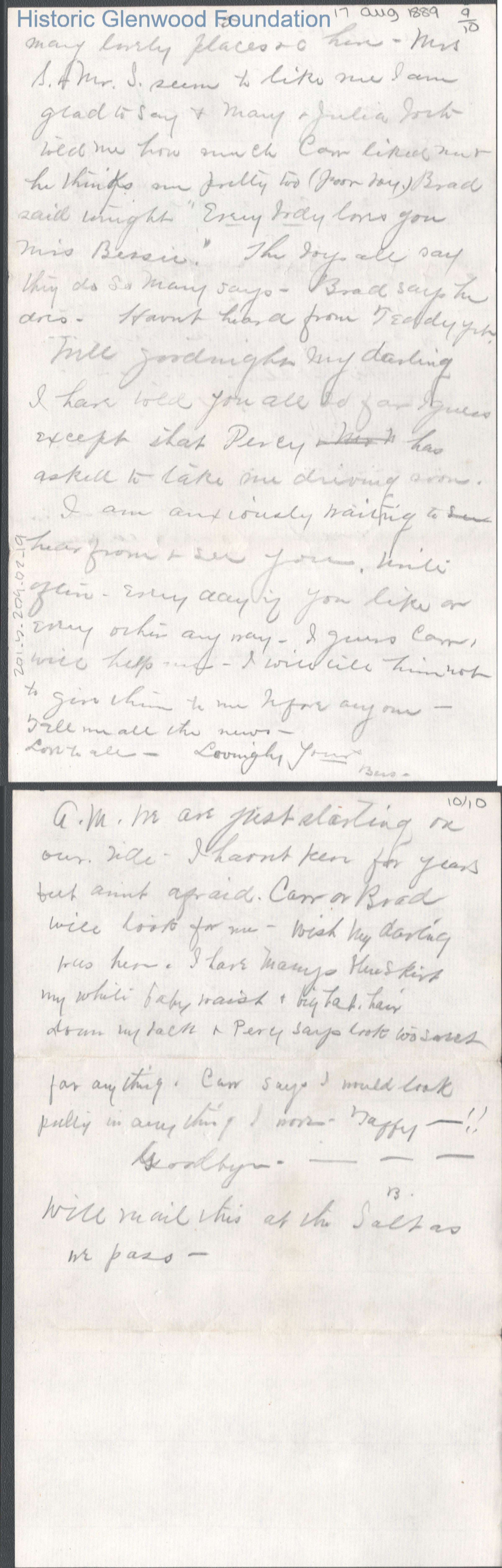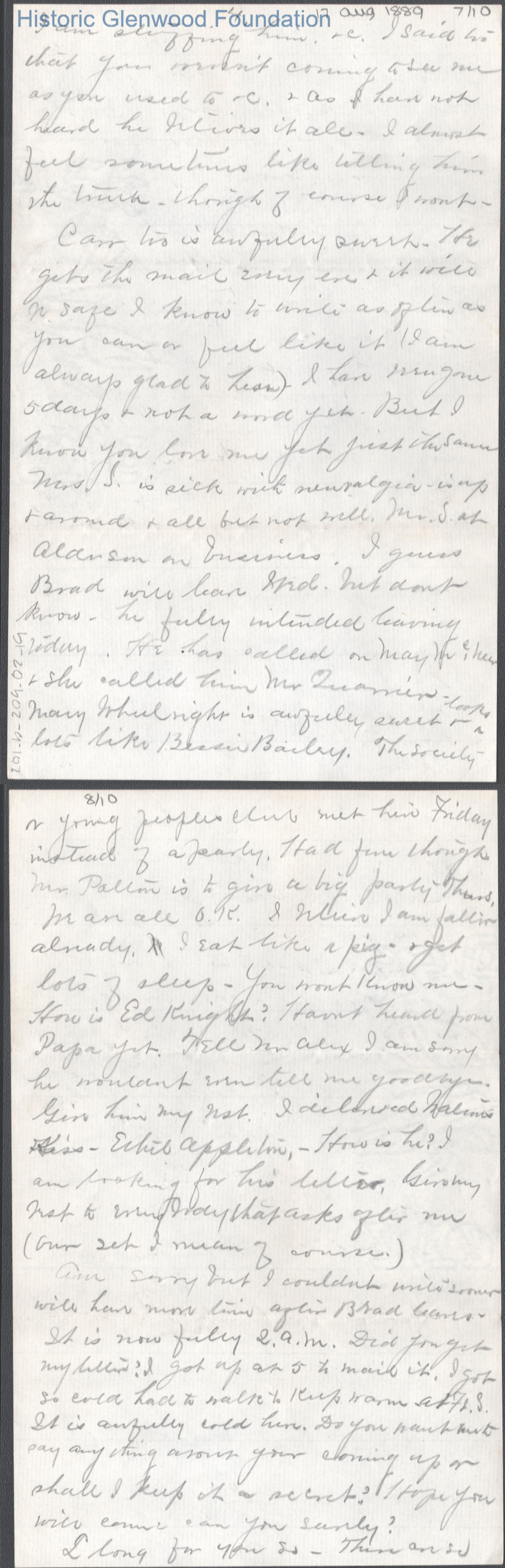 Ten-page letter to Russell G. Quarrier from Elizabeth S. Quarrier, Aug 17, 1889.
