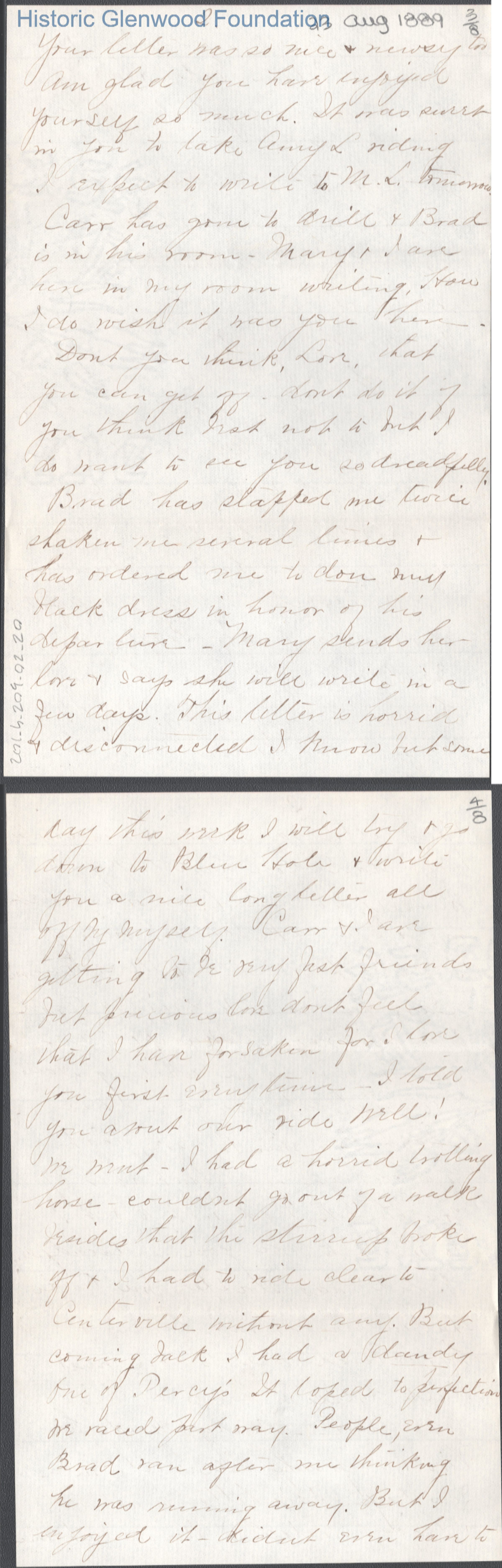 Eight-page letter to Russell G. Quarrier from Elizabeth S. Quarrier, Aug 23, 1889.