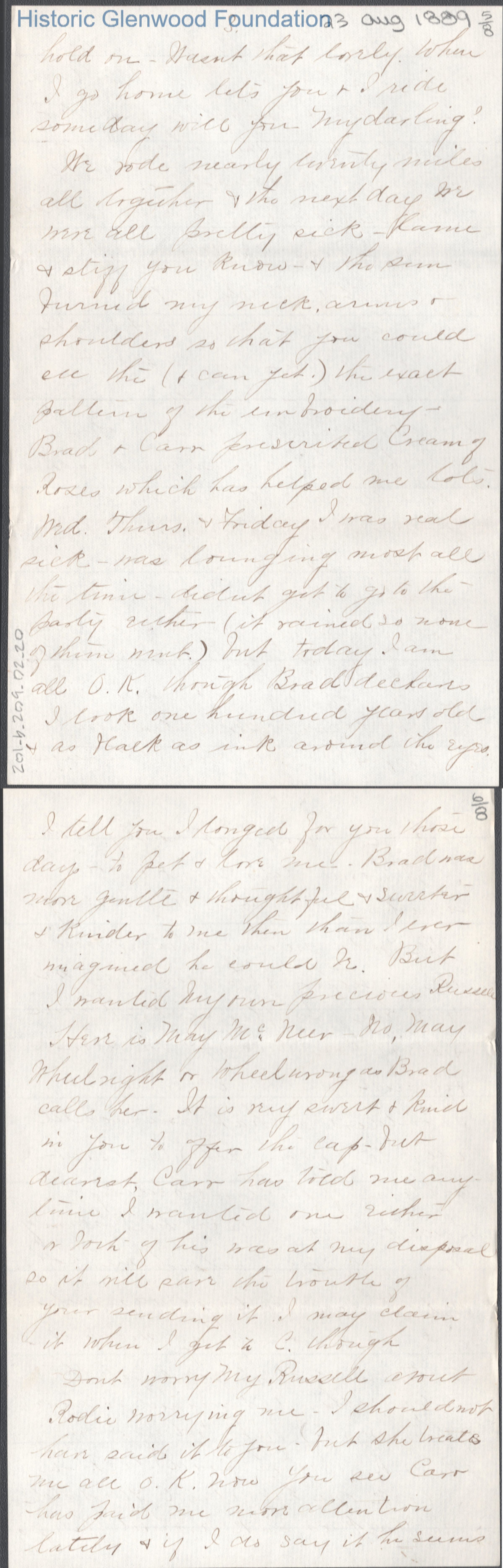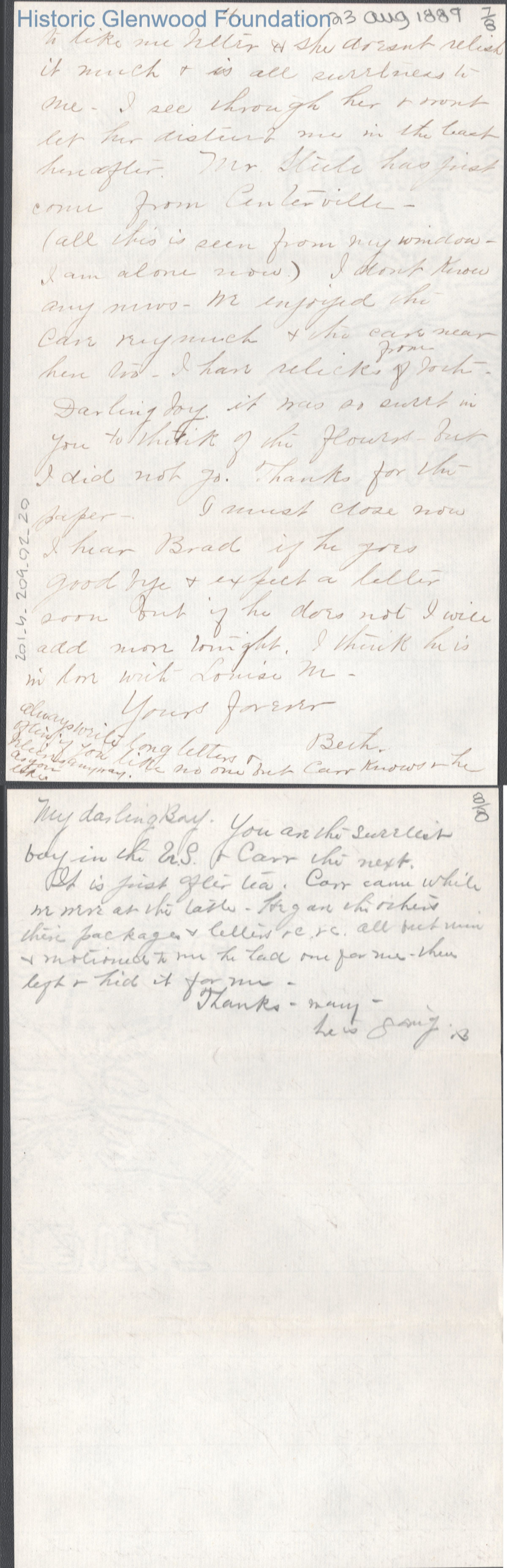 Russell G. Quarrier from Elizabeth S. Quarrier, Aug 23, 1889