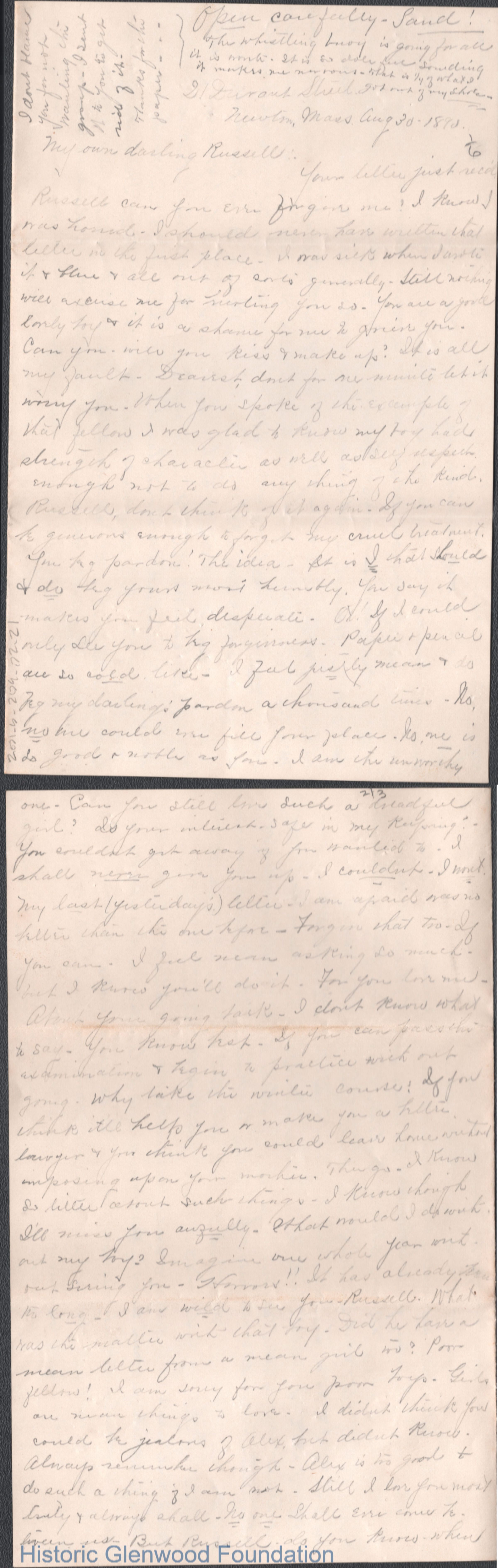 Russell G. Quarrier from Elizabeth S. Quarrier, Aug 30, 1890