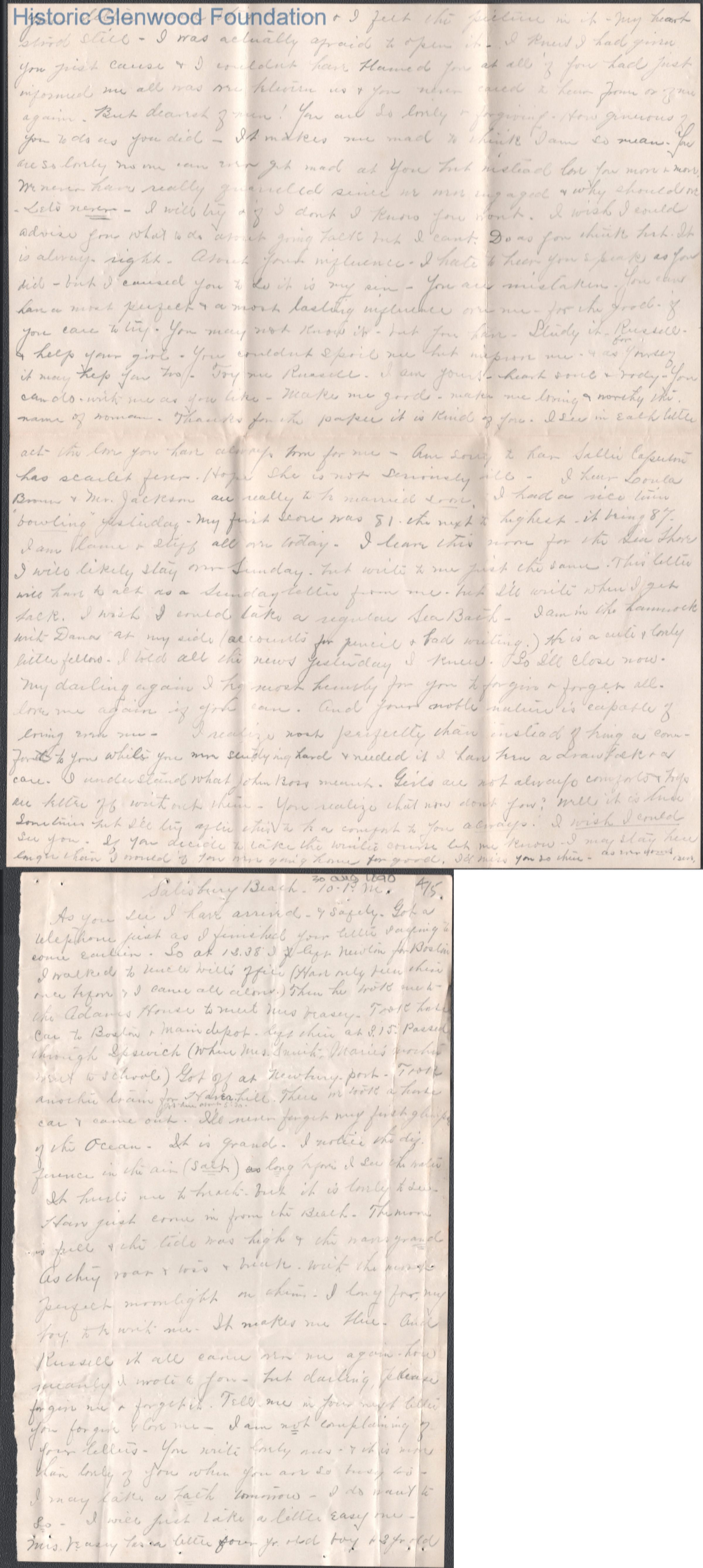 Five-page letter to Russell G. Quarrier from Elizabeth S. Quarrier, Aug 30, 1890.