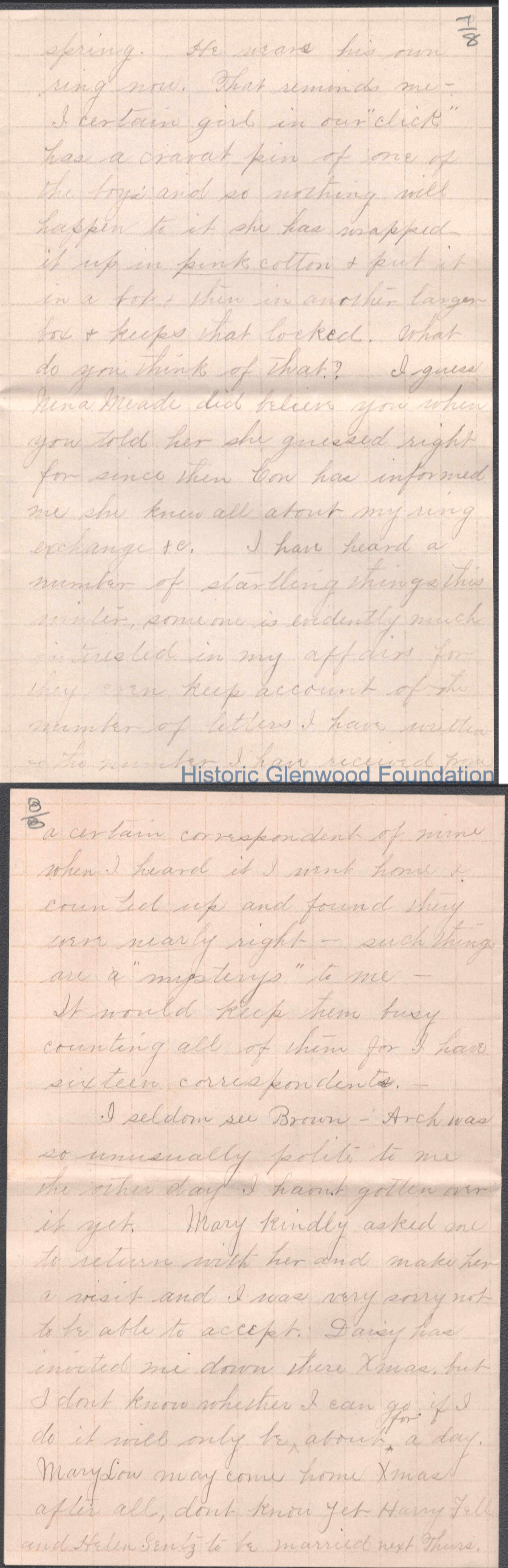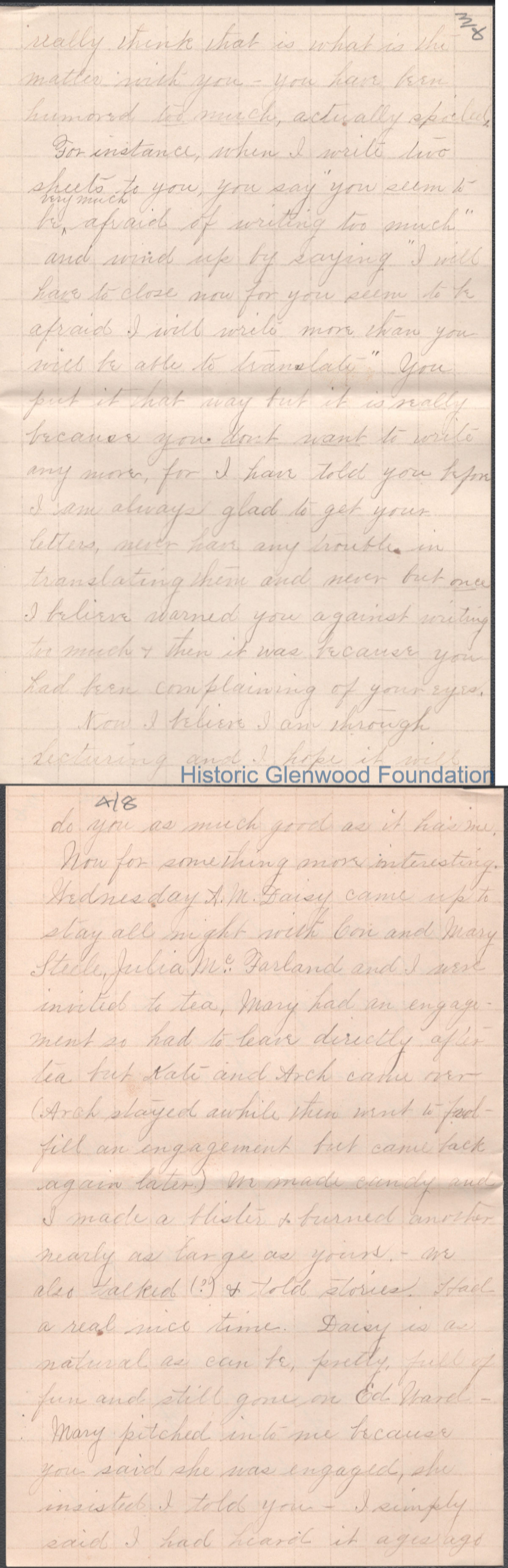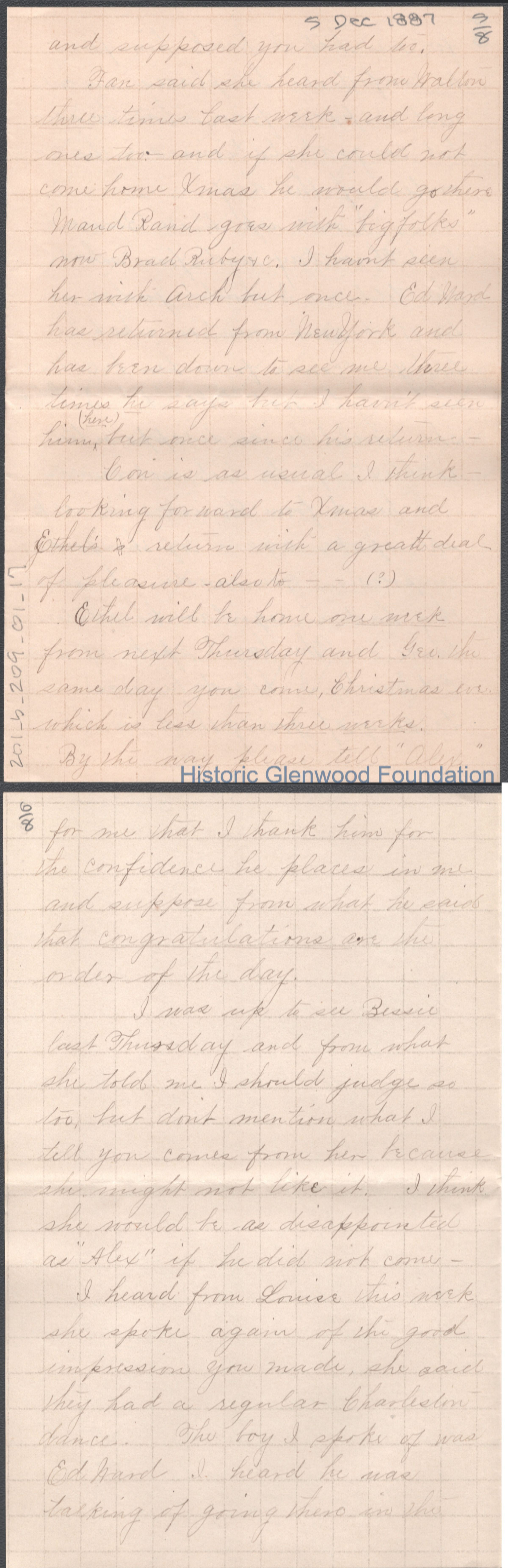 Eight-page letter to Russell G. Quarrier from Elizabeth S. Quarrier, Dec 5, 1887.