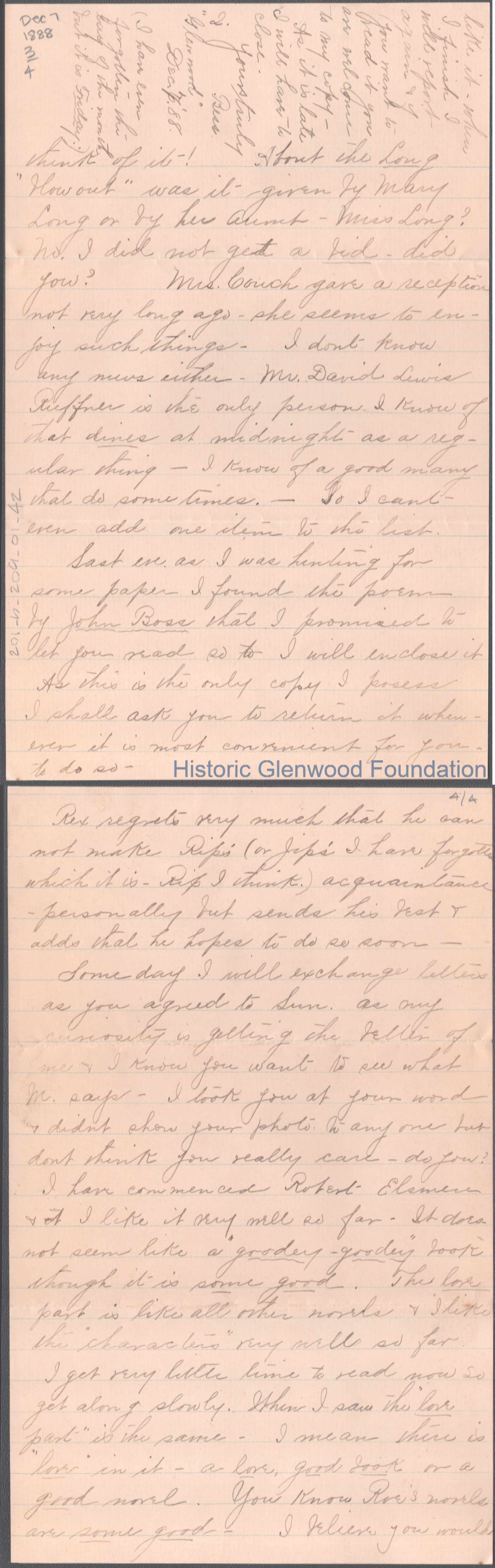 Russell G. Quarrier from Elizabeth S. Quarrier, Dec 7, 1888