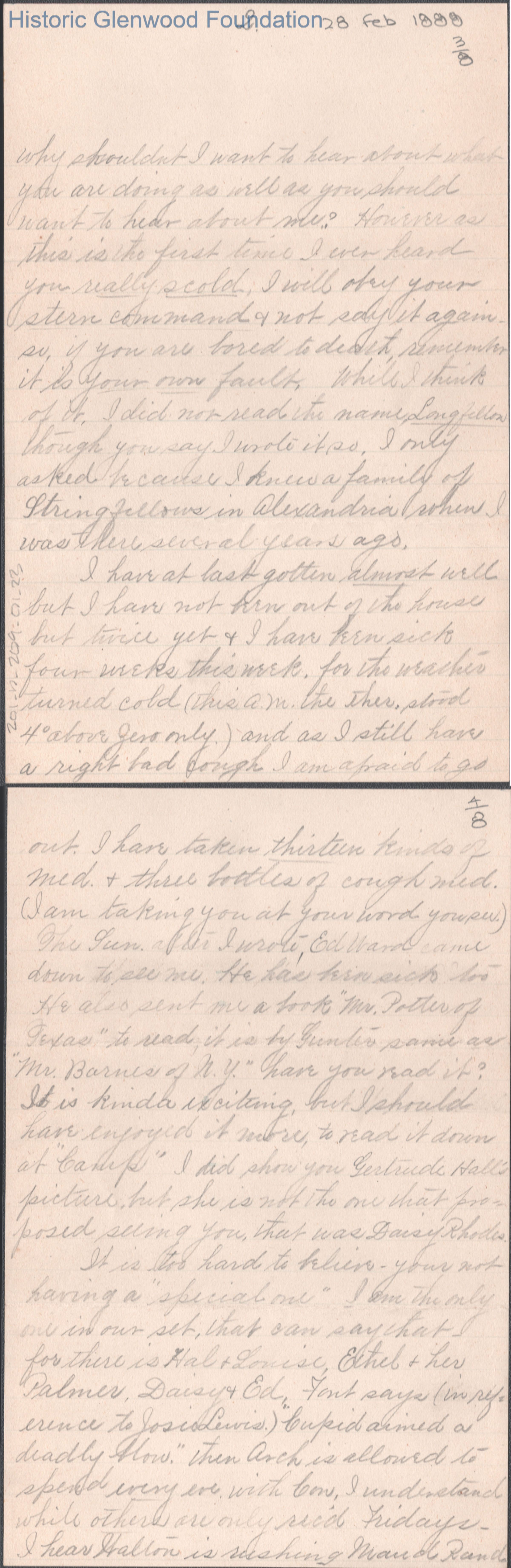 Eight-page letter to Russell G. Quarrier from Elizabeth S. Quarrier, Feb 28, 1888.