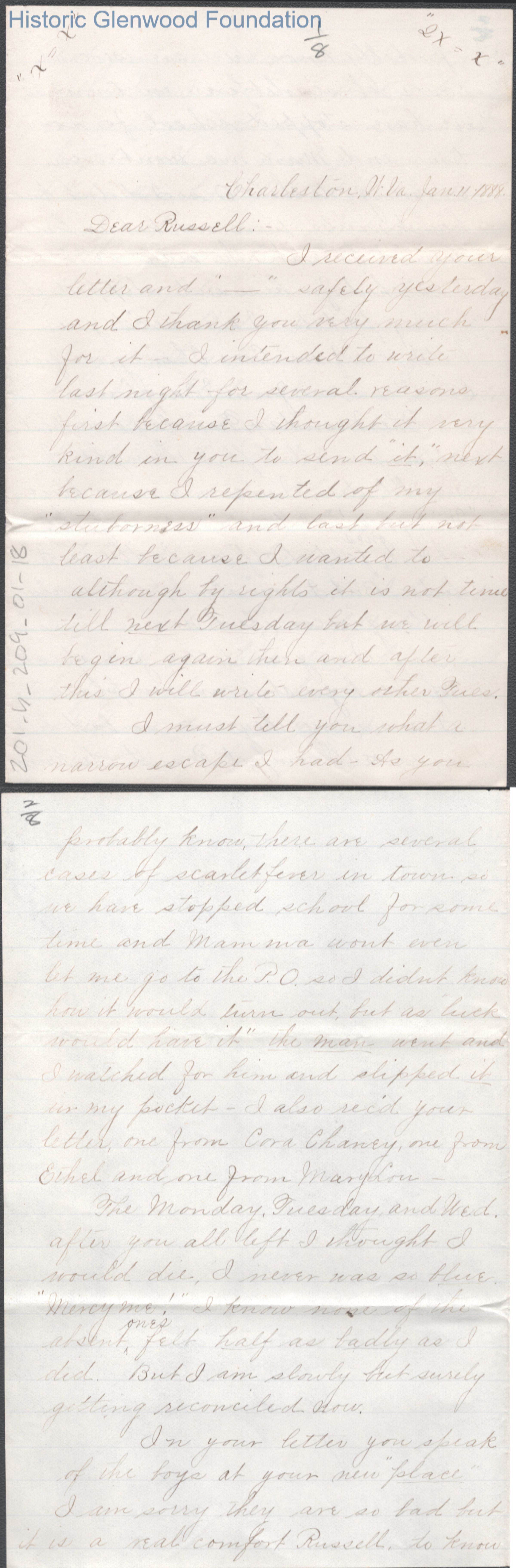 Russell G. Quarrier from Elizabeth S. Quarrier, Jan 11, 1888
