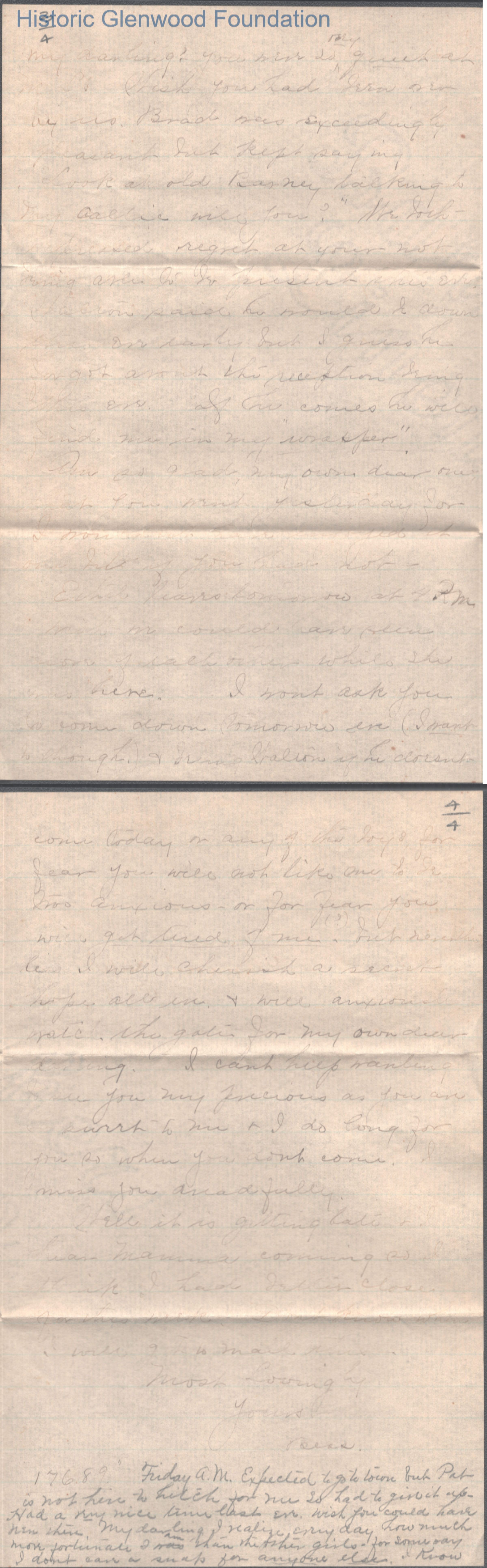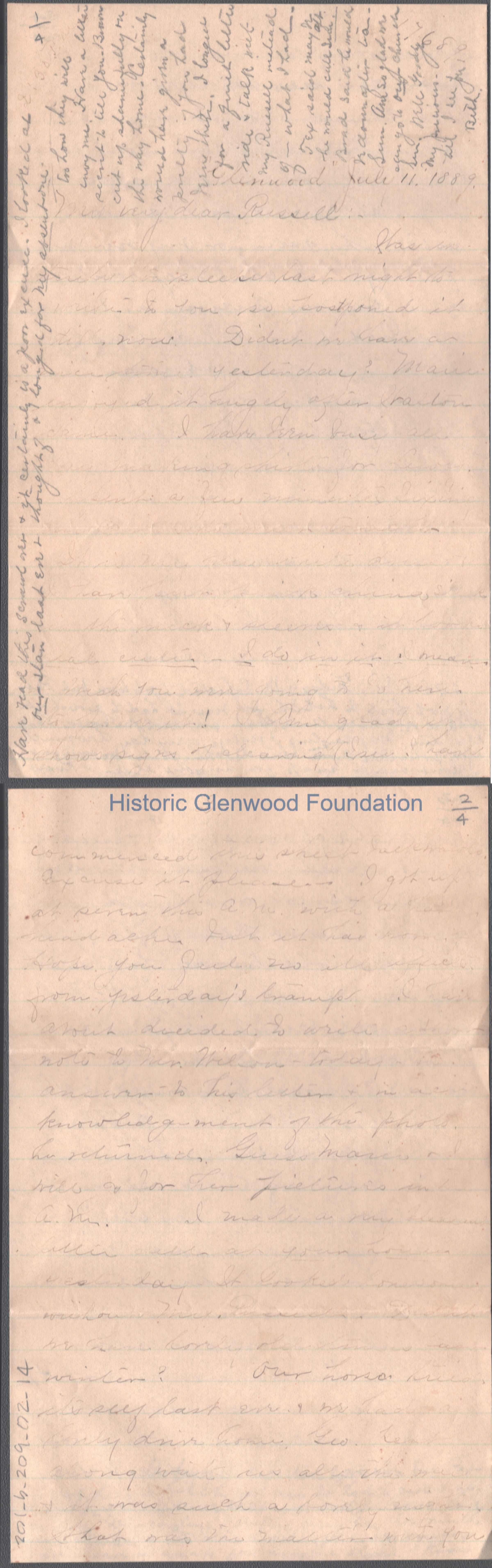Four-page letter to Russell G. Quarrier from Elizabeth S. Quarrier, Jul 11, 1889.