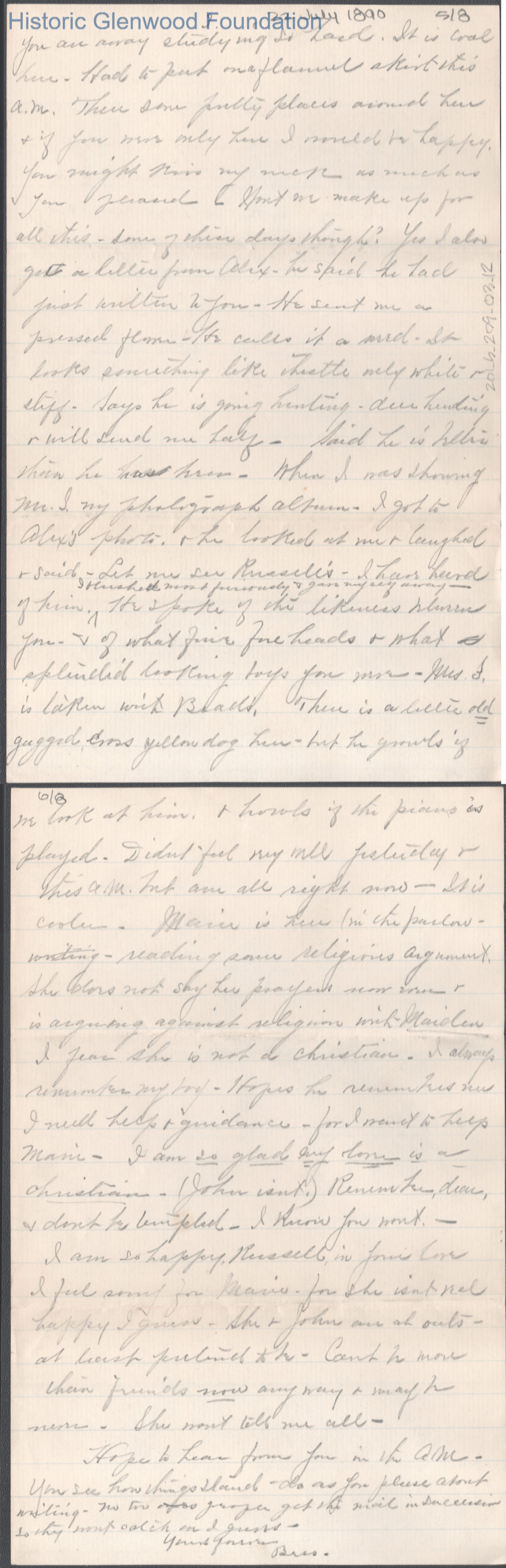 Russell G. Quarrier from Elizabeth S. Quarrier, Jul 22, 1890