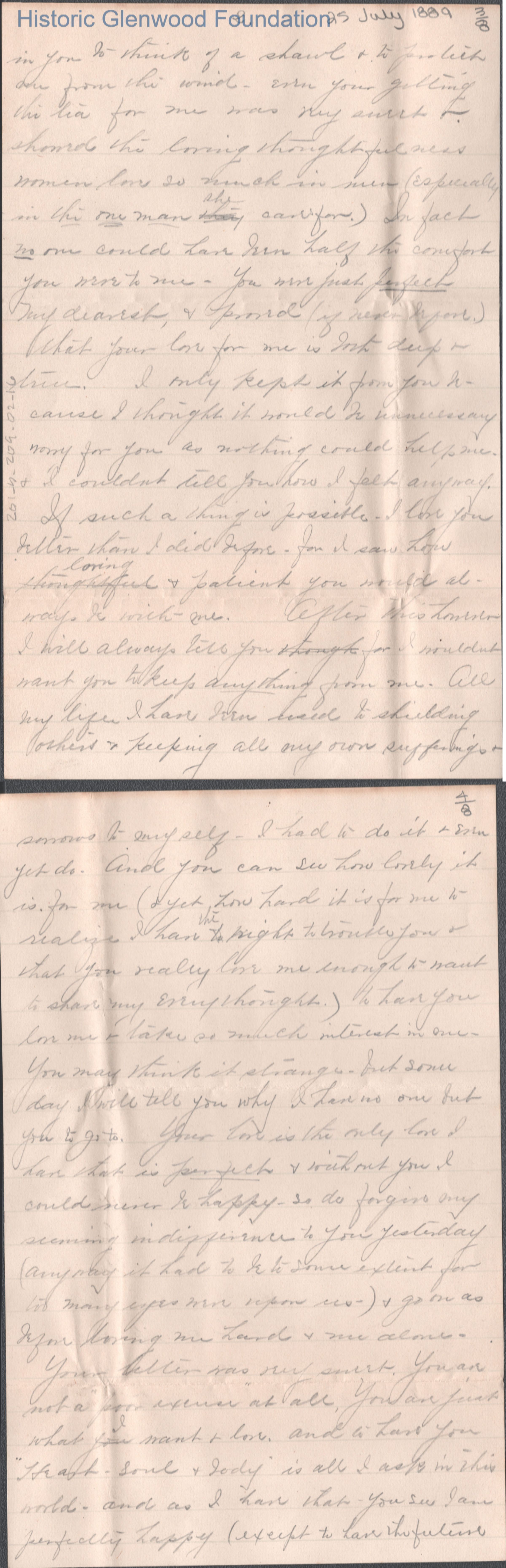 Eight-page letter to Russell G. Quarrier from Elizabeth S. Quarrier, Jul 25, 1889.