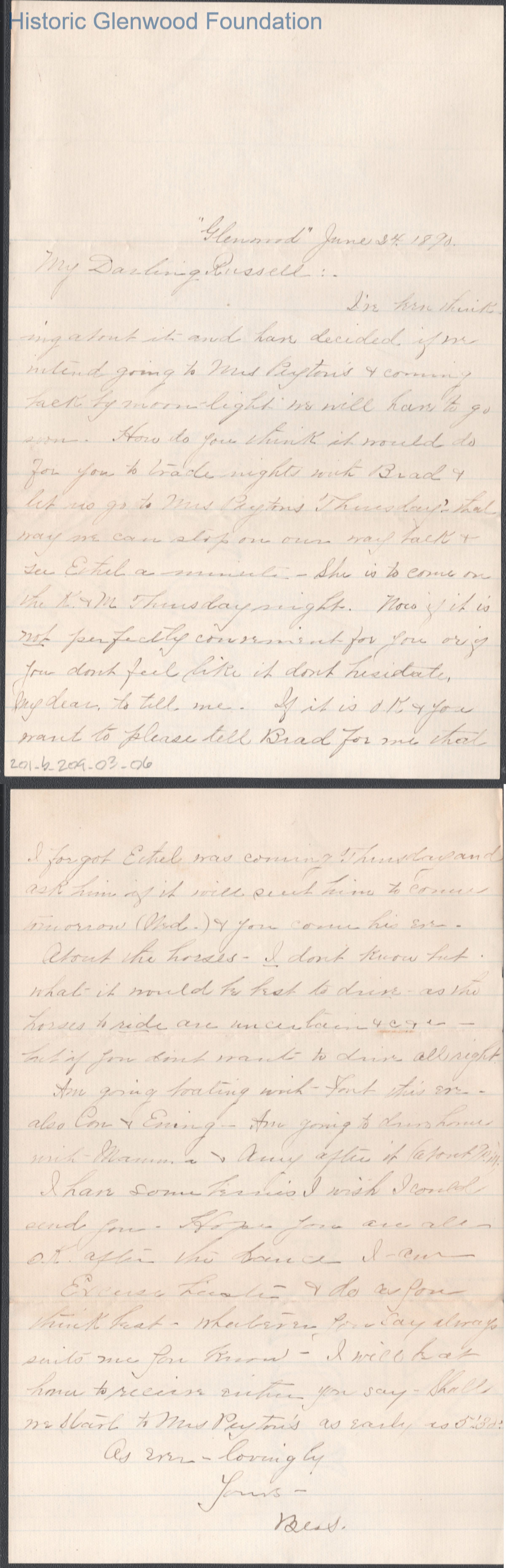 Russell G. Quarrier from Elizabeth S. Quarrier, Jun 24, 1890