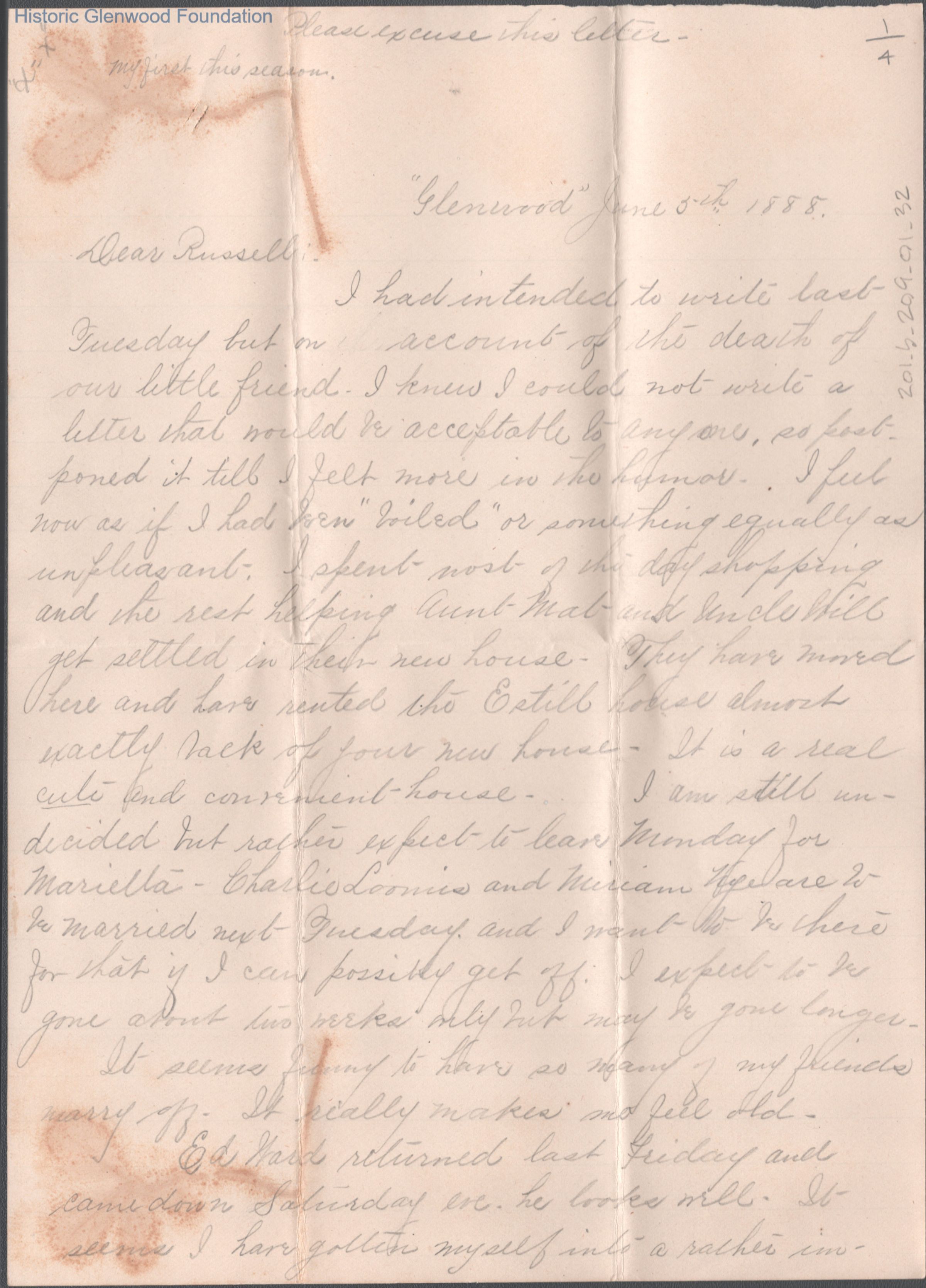 Russell G. Quarrier from Elizabeth S. Quarrier, Jun 5, 1888