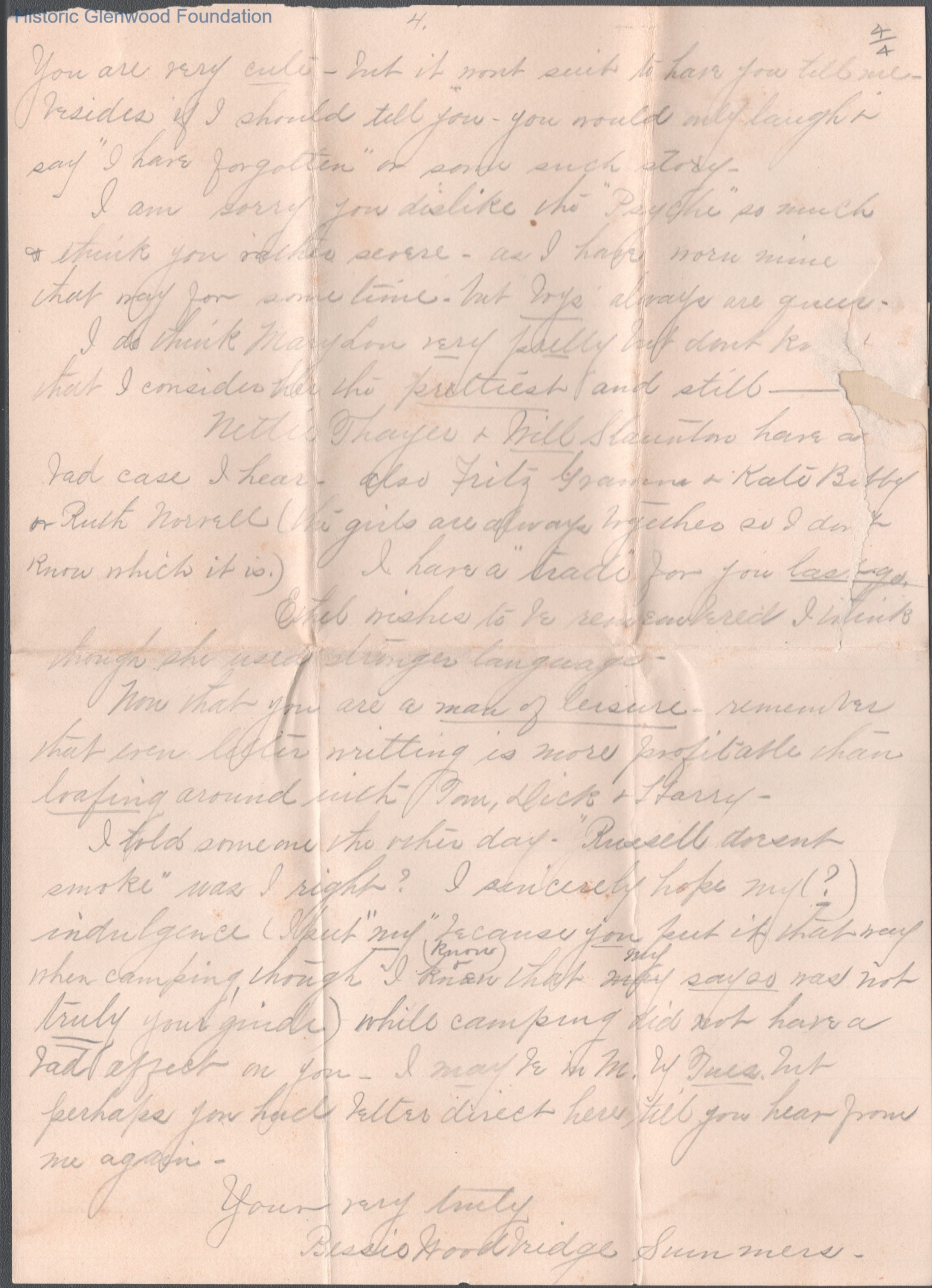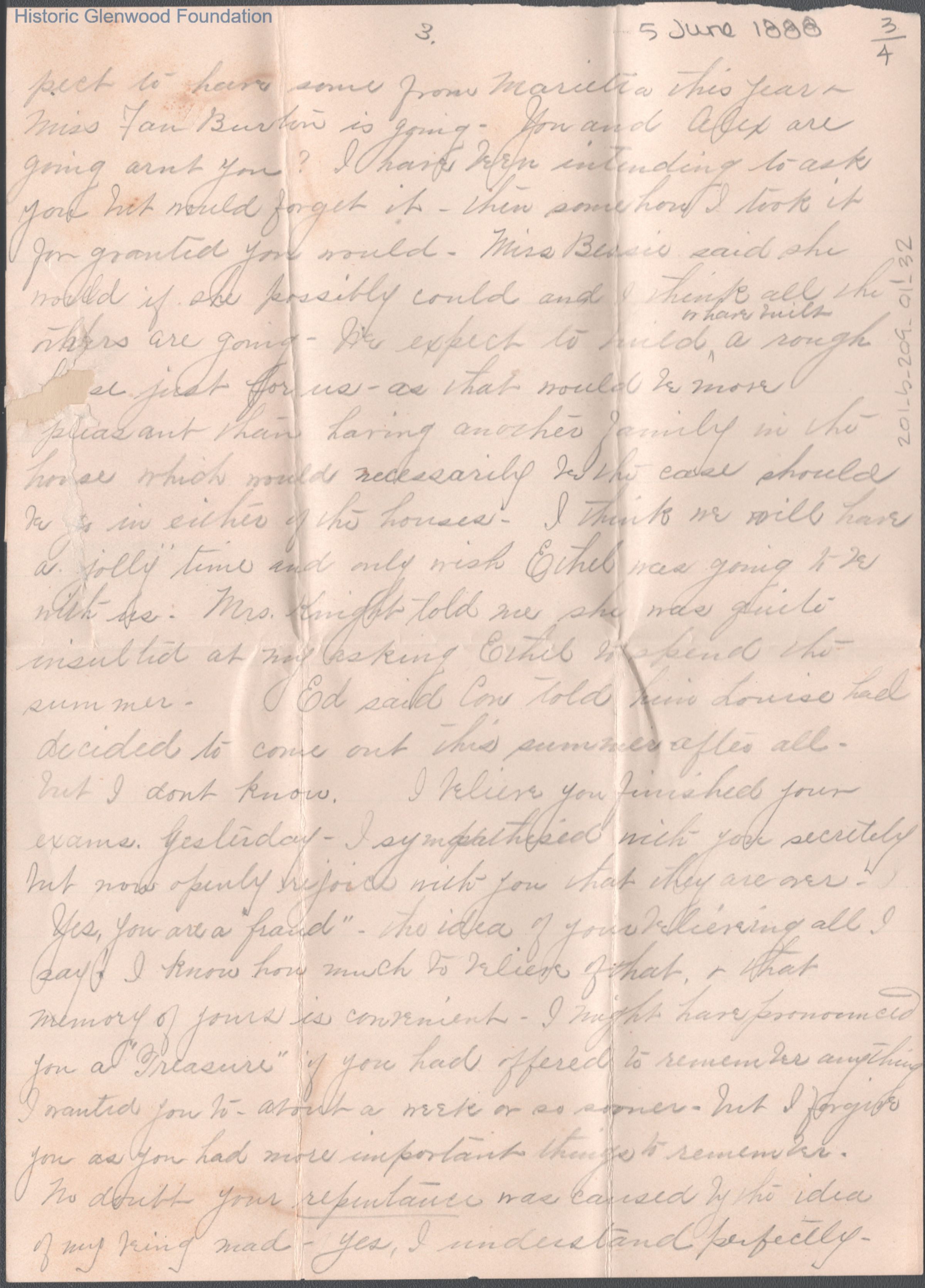 Four-page letter to Russell G. Quarrier from Elizabeth S. Quarrier, Jun 5, 1888.