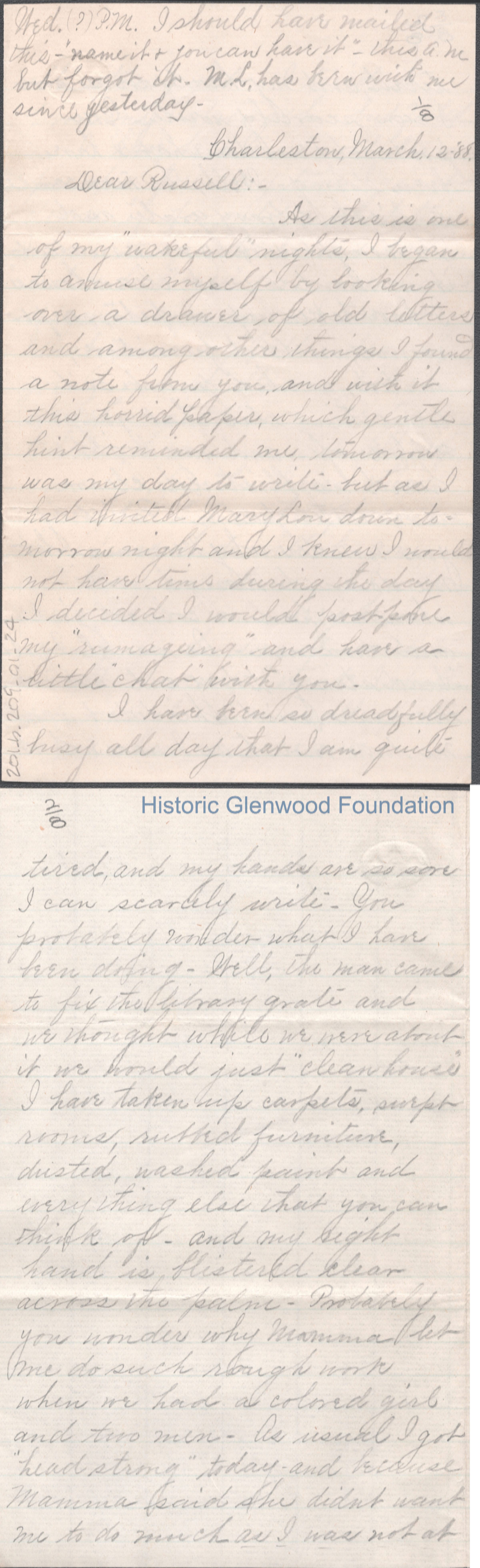 Russell G. Quarrier from Elizabeth S. Quarrier, Mar 12, 1888